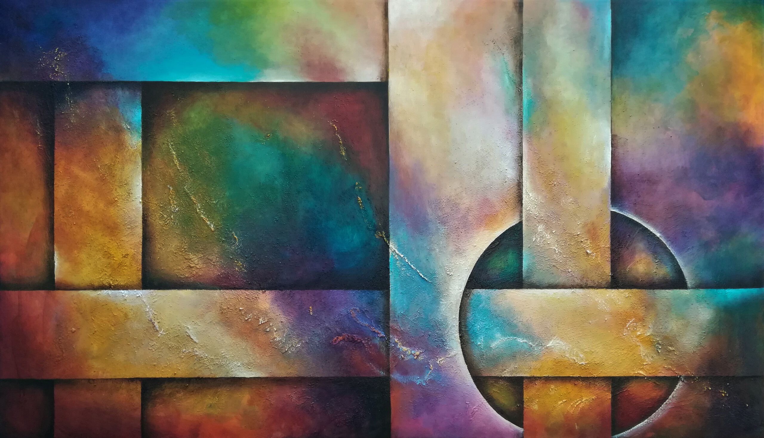 Geometrie Vormen Rechthoeken Rechthoek Vierkanten Vierkant Cirkel Lijnen Lijnenspel Kleuren Kleurrijk Synergie Textuur Wolken Gevlamd Paars Blauw Geel