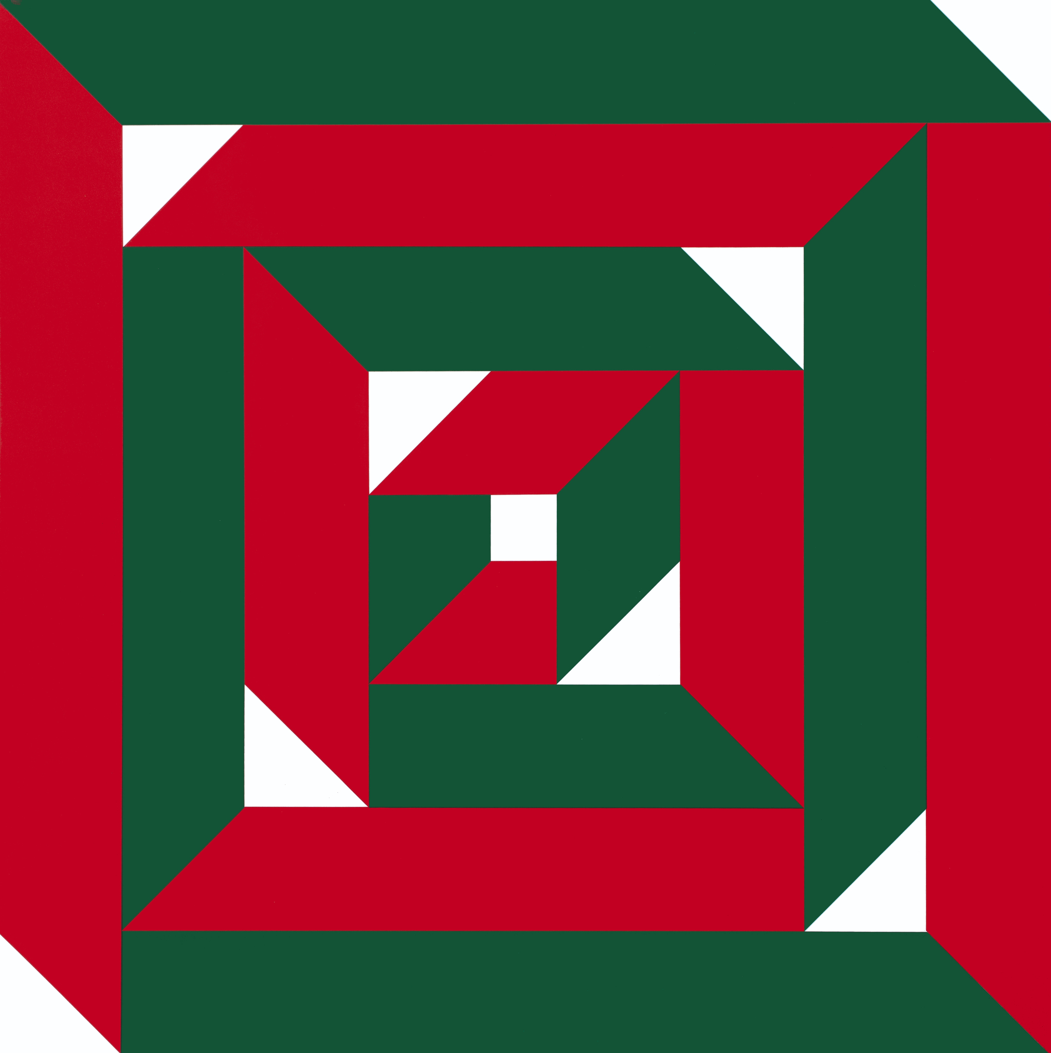 'Raster - groen-rood 3.' - kleurige geometrisch-abstracte kunst, in zeefdruk