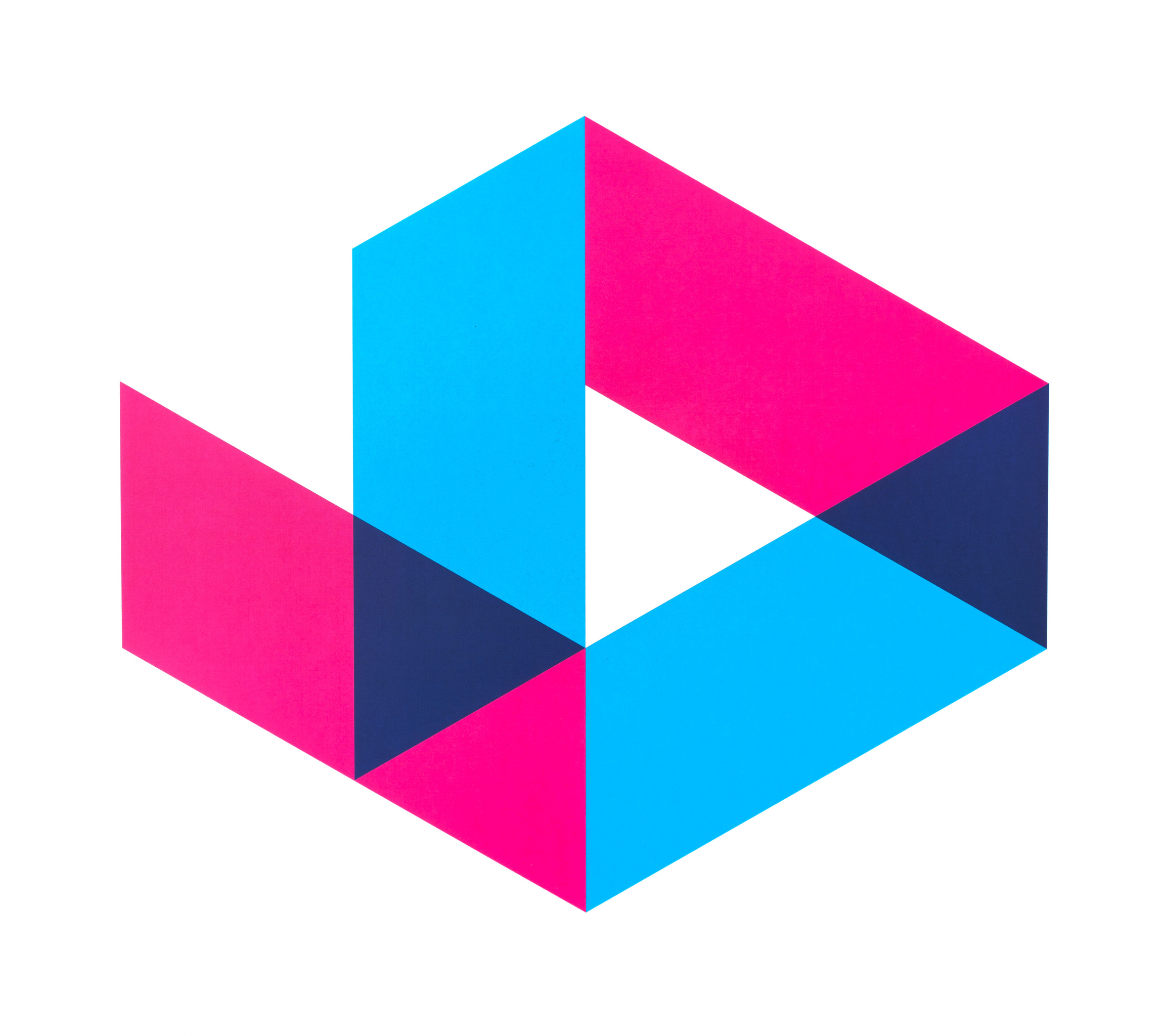 'Haak - blauw rood' - kleurige geometrisch-abstracte print in zeefdruk.