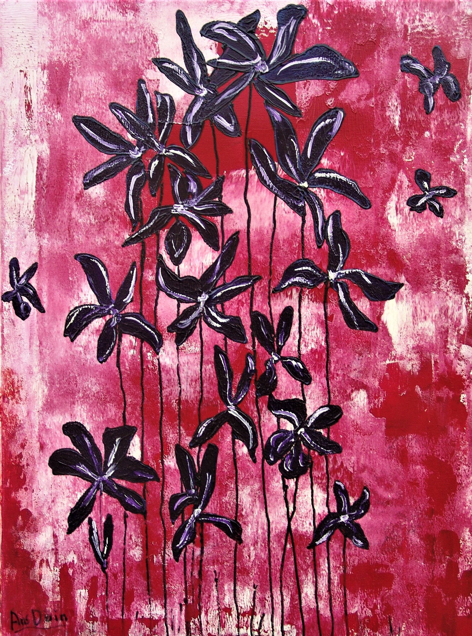 Butterfly flowers pasty painted with acrylic on premium cotton and finished with varnish to preserve the bright colors. Size 60 x 80 cm. Incl. hanging work.Free delivery in the Netherlands.
