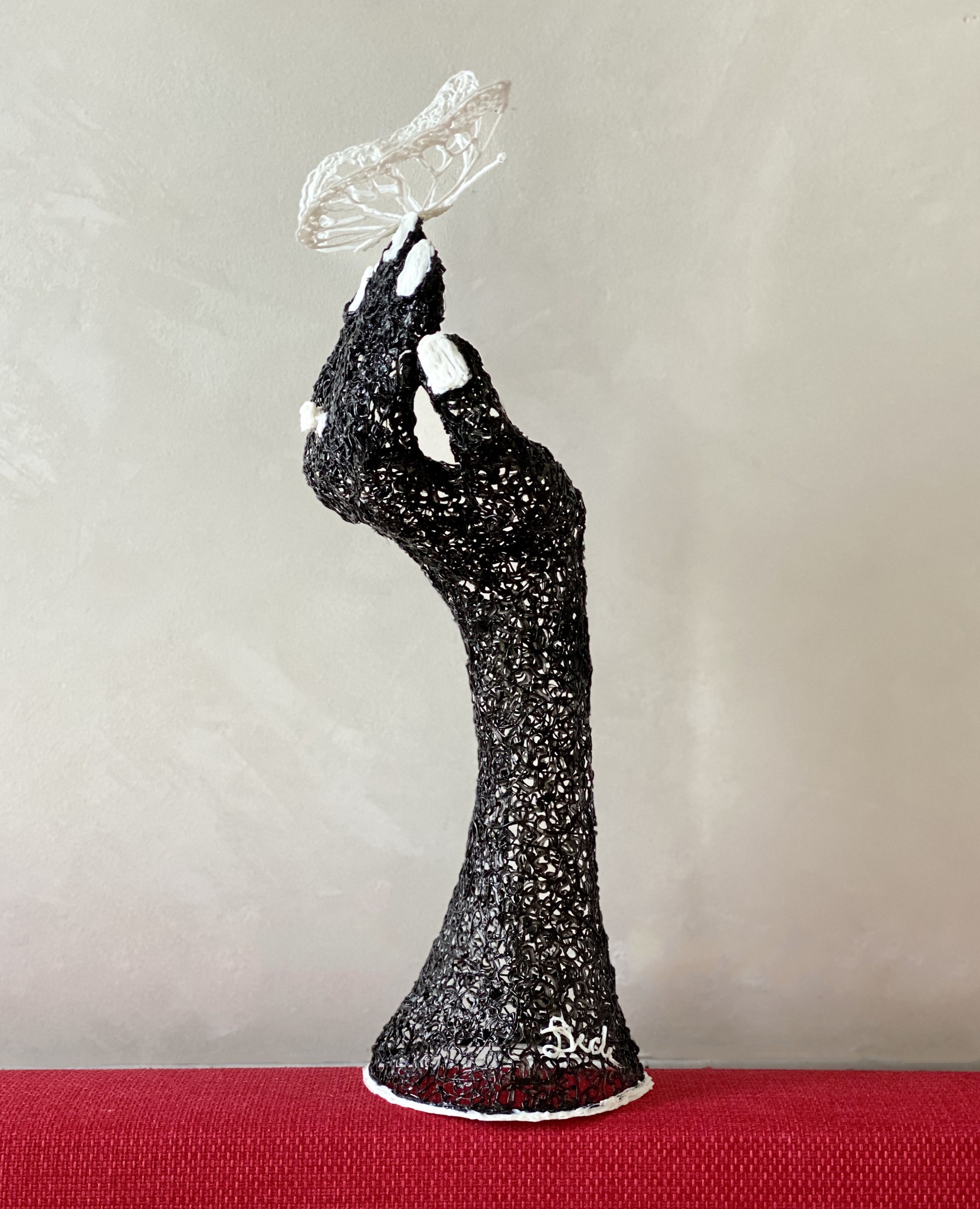 De intentie van mijn werk is om het materiaal te laten leven zoals de mens leeft in -vloeiende lijnen en gratie- en de hand van de kijker verleiden om het beeld aan te raken en te strelen.