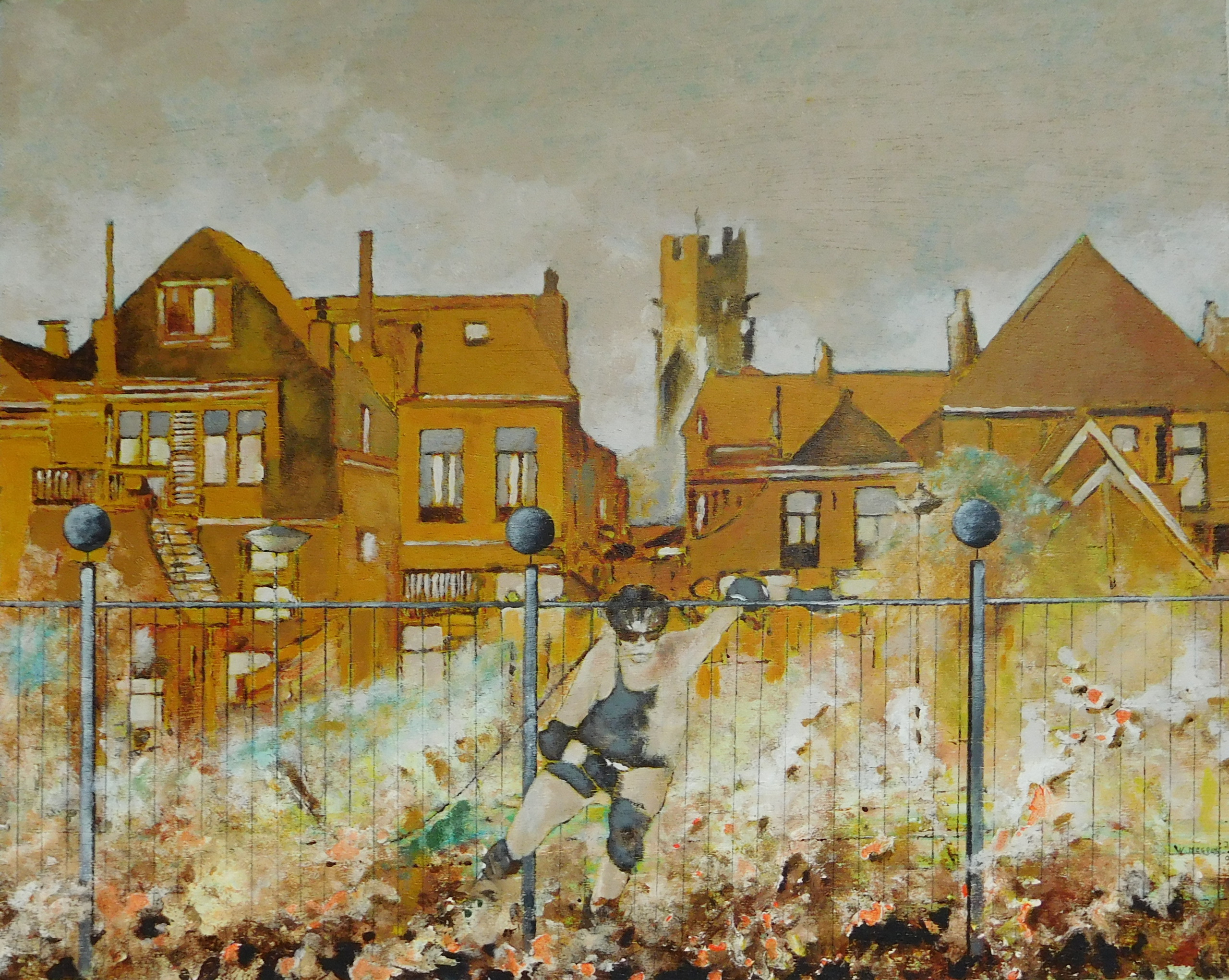 Stijlelementen uit het symbolisme en het futo-realisme vormen mijn inspiratie. Fantasie en werkelijkheid komen tot leven in kleurrijke straattaferelen, vreemdsoortige bouwsels en perspectivische vergezichten.