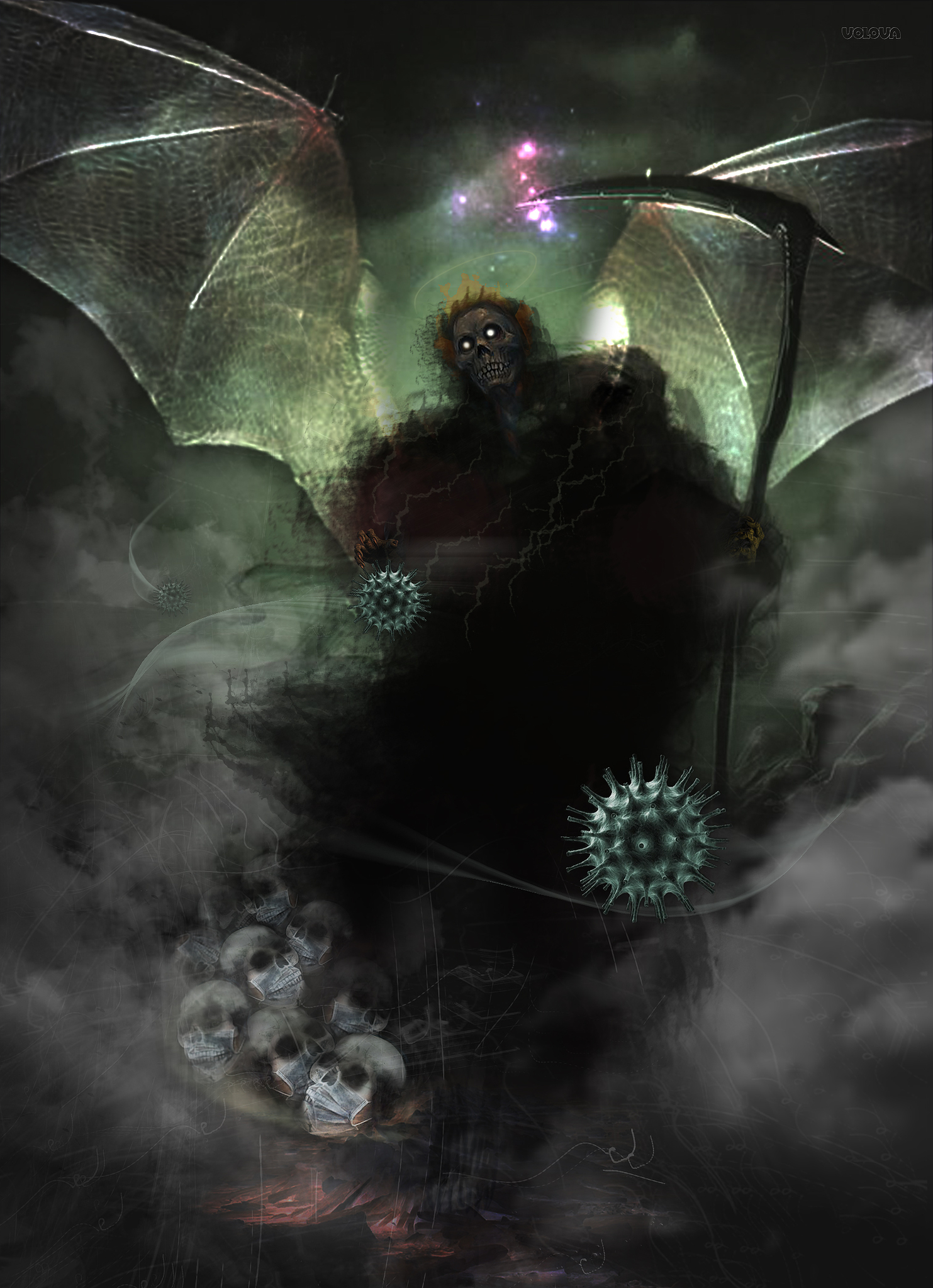 Virus Corona Dood Besmet Spiritueel Digitaal Zwart Atmosfeer