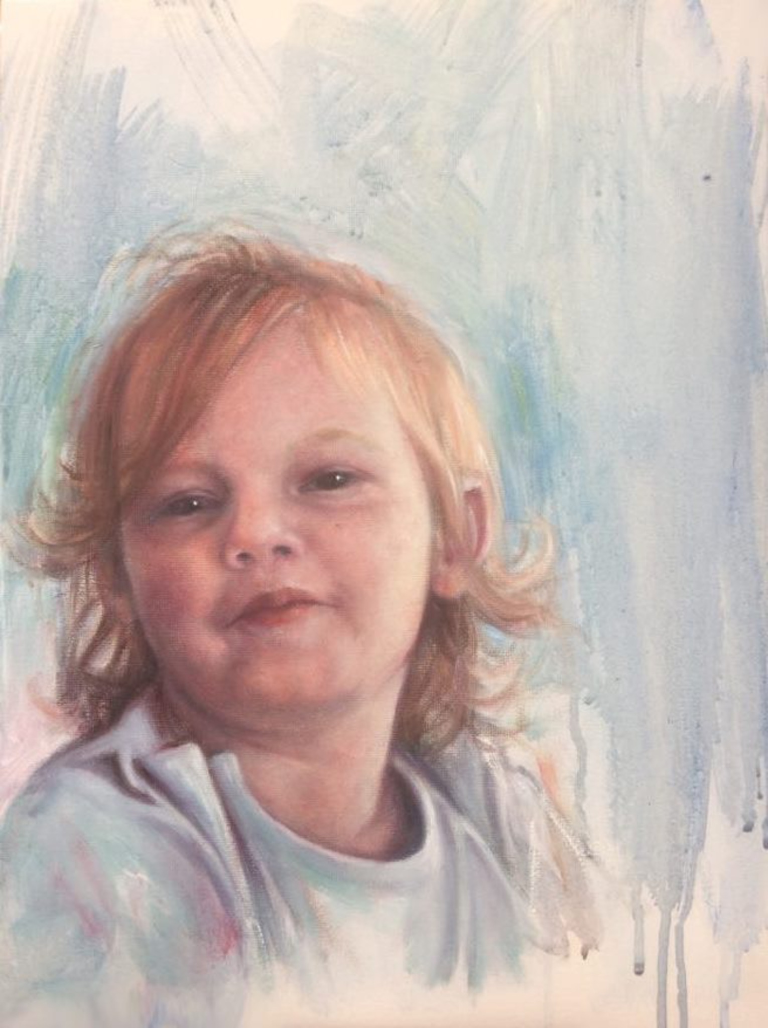 Studie in waterolieverf (H2Oil) van een kinderkop.