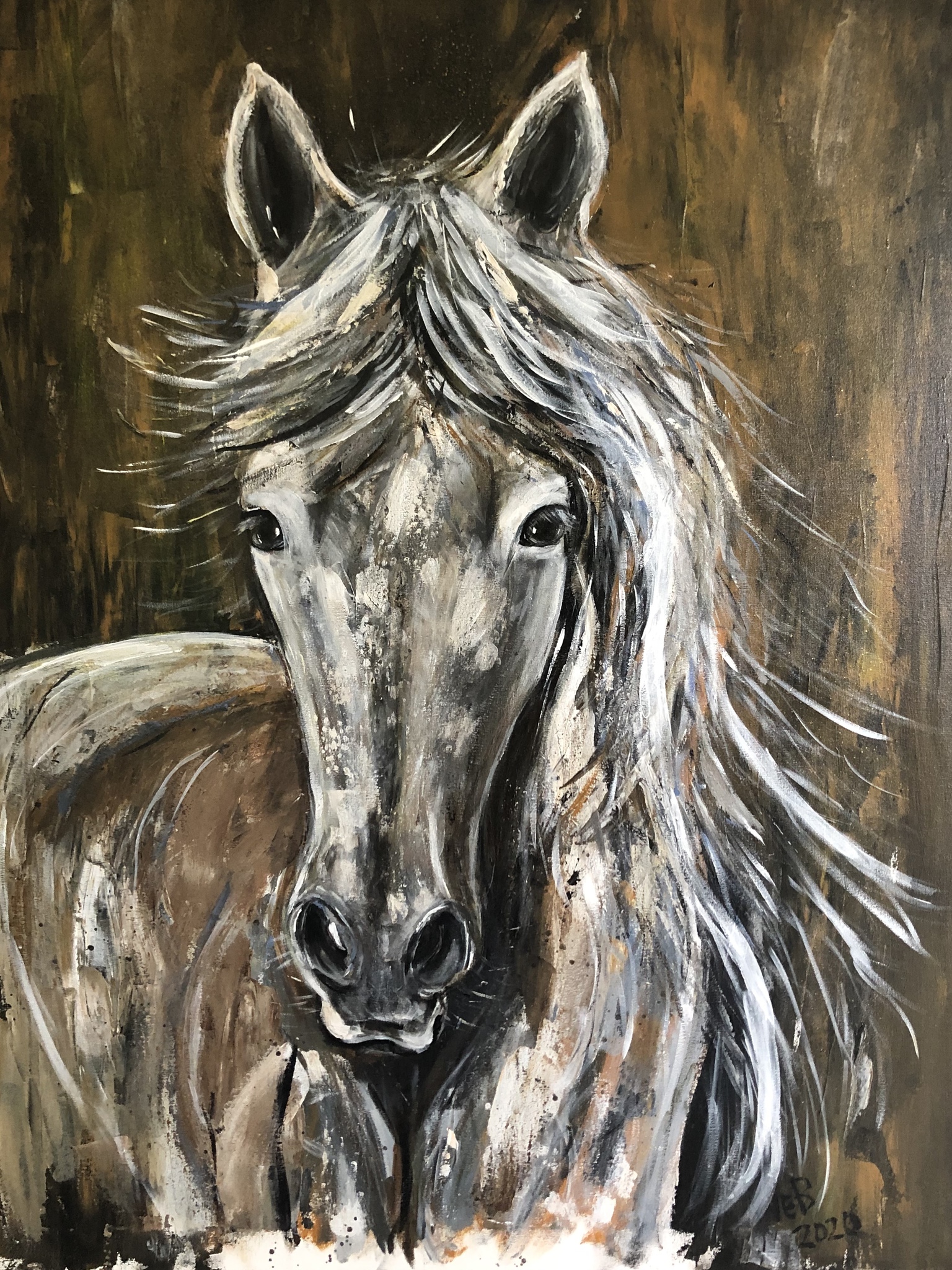 Paard Spaans Andalusier Schimmel Acryl Wit Grijs Horse Pre Natuur Kleurrijk Manen