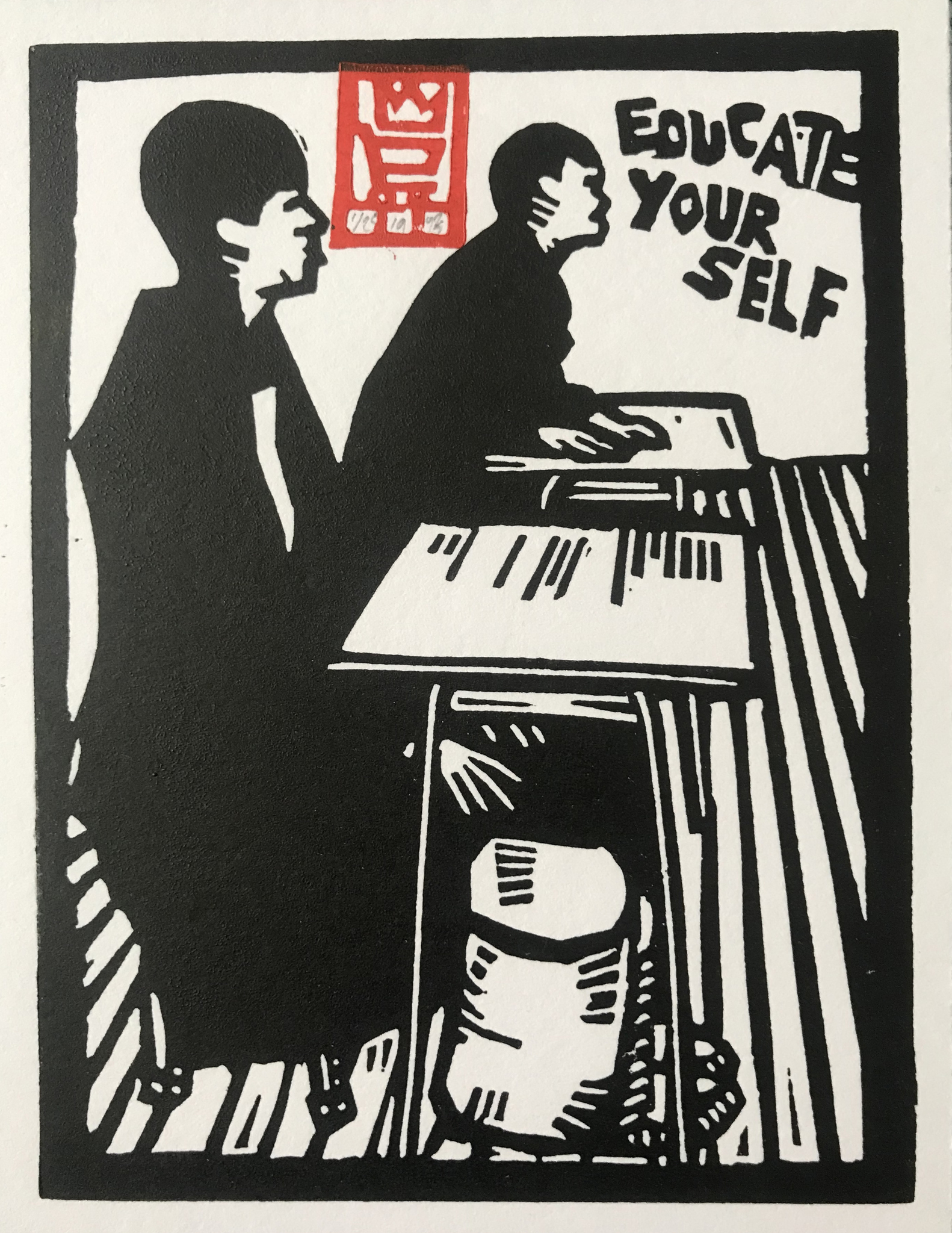 Art Houtsnedes Print Japan Graffiti Death Linosnede Streetart Prints Nyc Linocut Linodruk Onderwijs Rex Linoleumdruk Straatkunst Postkaart Postcards Woodblock Houtdrukken Grabado Educate