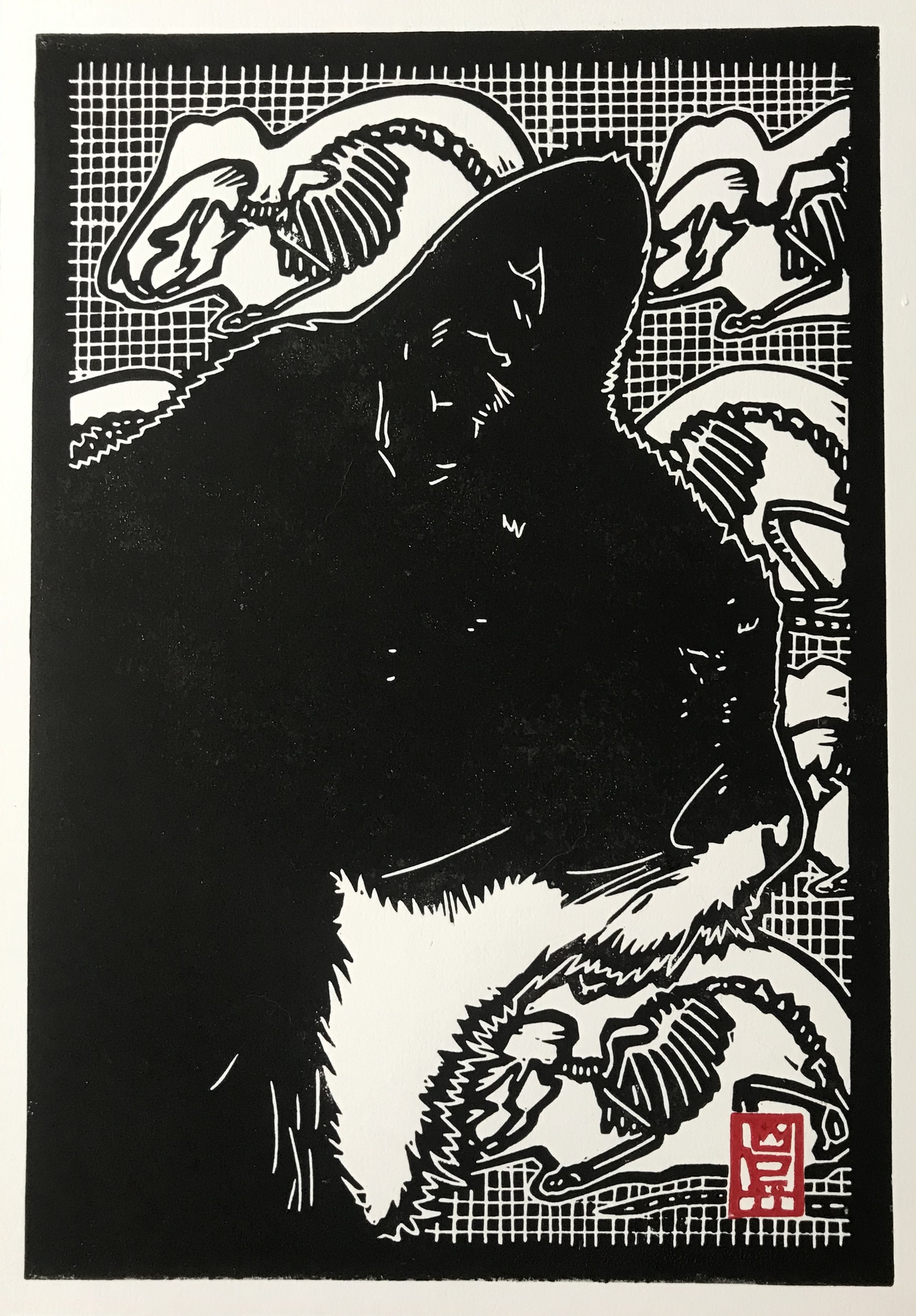 Art Kat Houtsnedes Print Japan Druk Graffiti Cats Death Linosnede Streetart Nyc Linocut Mouse Linodruk Hank Linoleumdruk Straatkunst Nippon Printmaking Printmaker Woodblock Houtdrukken Grabado Handpress
