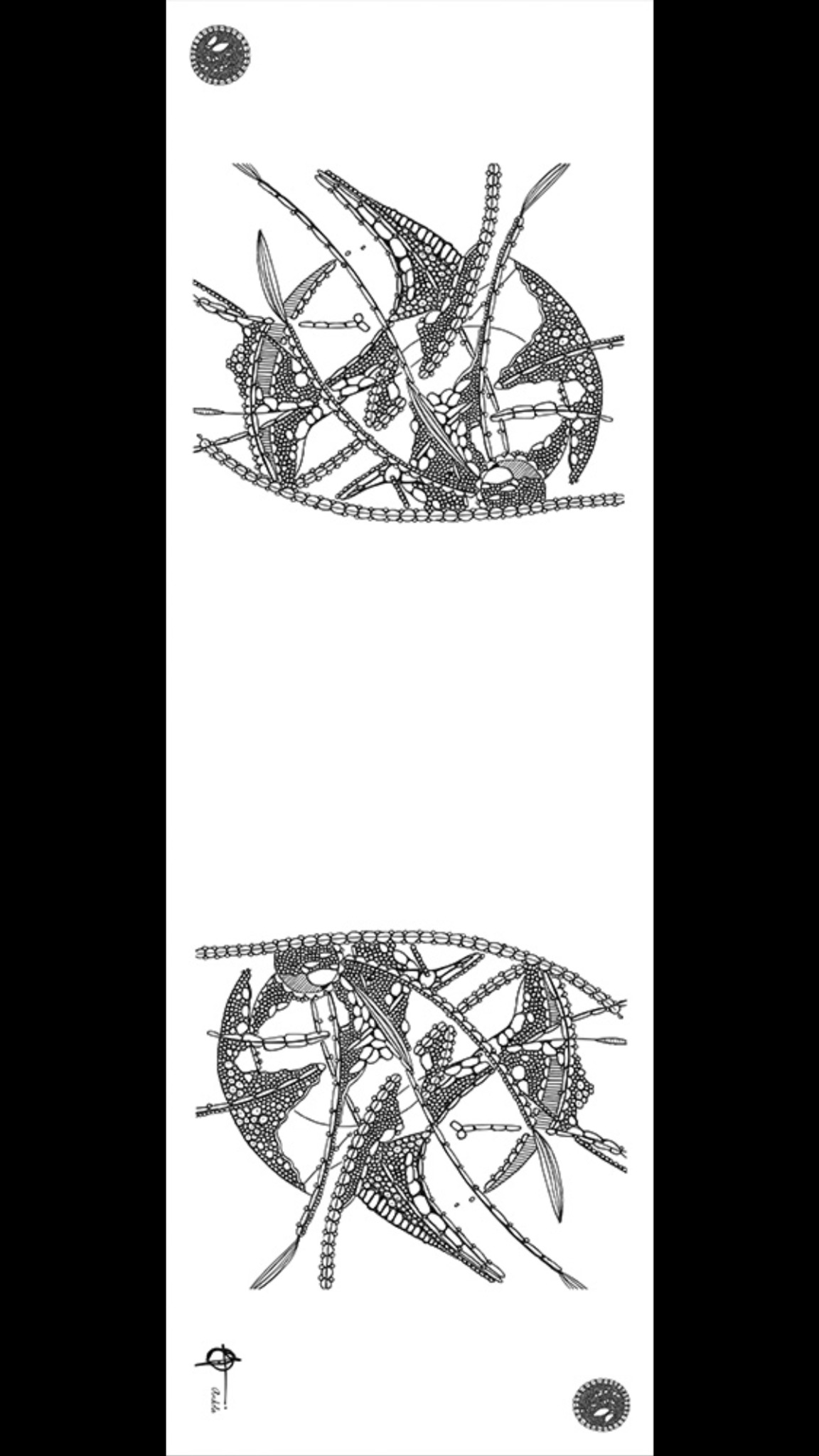 Sjaal Nr 3 handgetekend met kroontjespen en inkt in Nederland uitgewerkt op Zijde