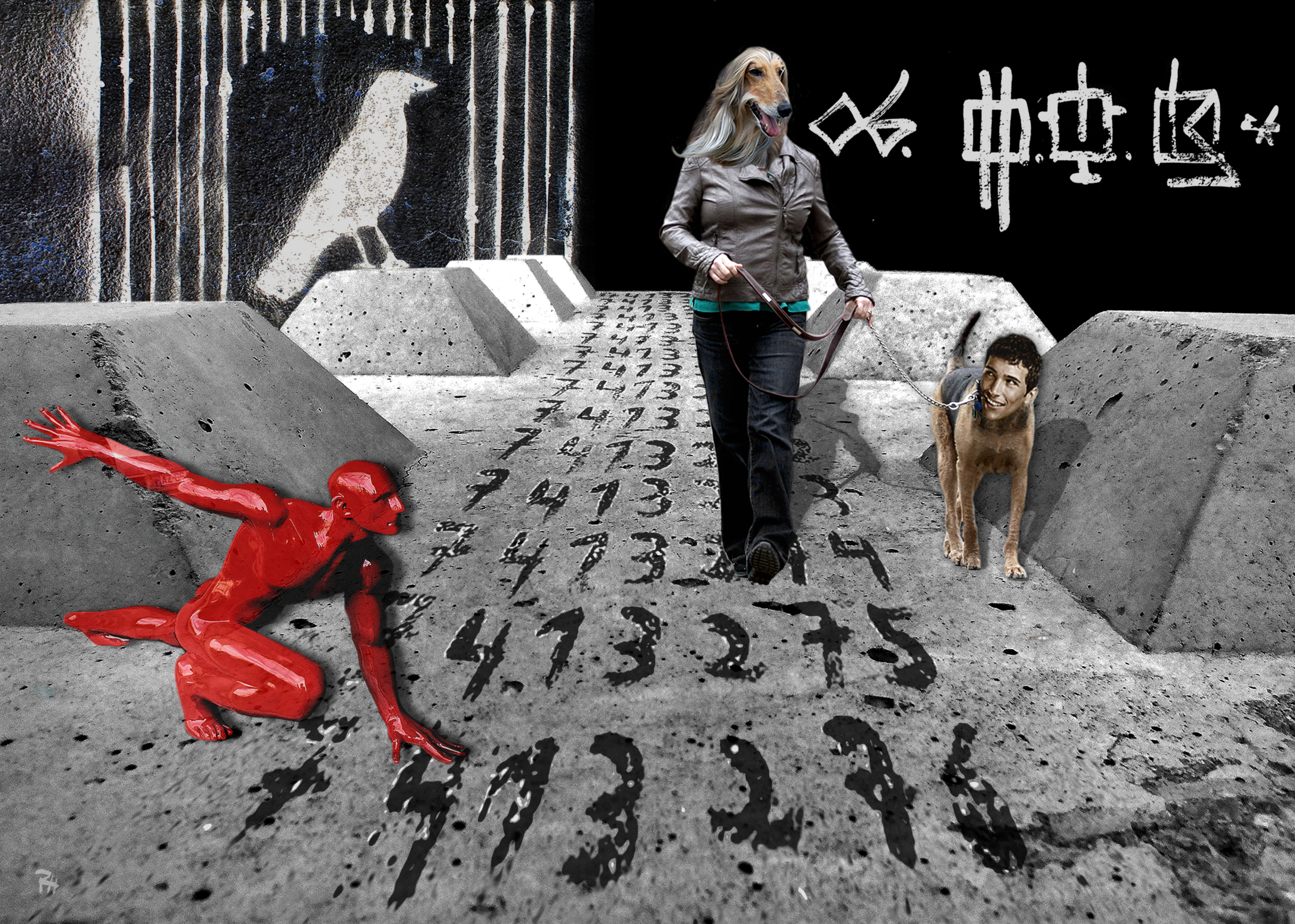 Vogel Vrouw Woman Hond Bird Dog Cijfers Tekens Beton Signs Concrete Numbers