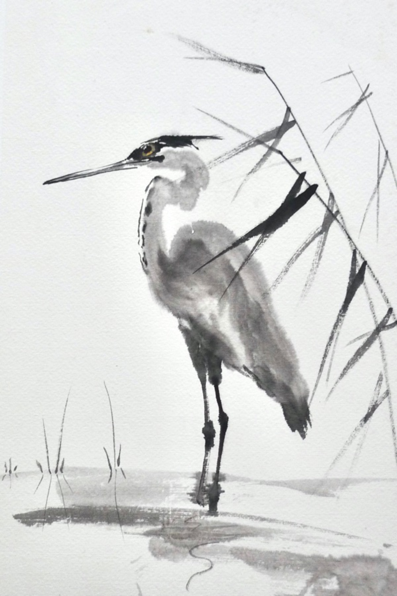 Vogel Wildlife Water Natuur Inkt Bird Reiger Riet Schilderen Rijstpapier Penseel Ink Egret Brushpainting