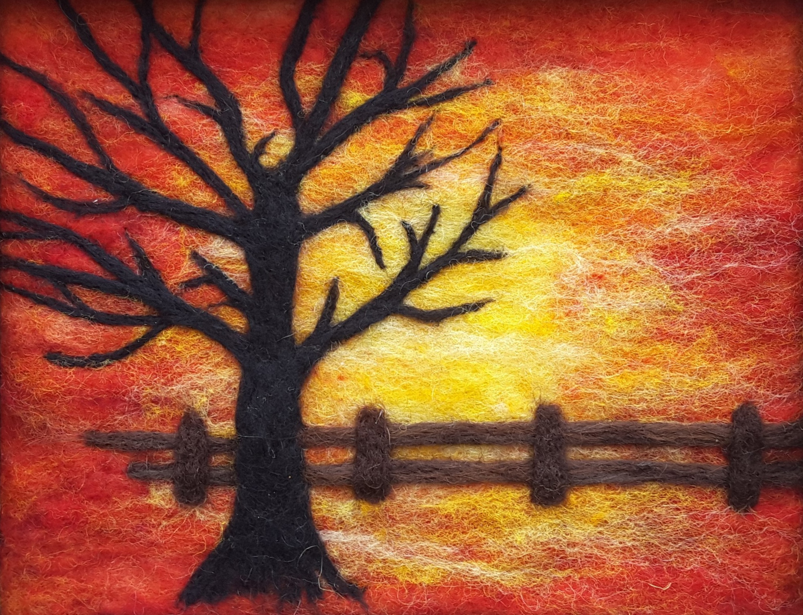 In april 2016 heb ik het droogvilten, naaldvilten, ontdekt tijdens een workshop “Schilderen met wol”. Schilderen met wol; dat had voor mij een magische klank. Het werken met zo veel kleuren wol, het laten verlopen van de ene kleur in de andere: de passie om met dit materiaal te werken is ontstaan. Met heel veel plezier besteed ik een groot deel van mijn vrije tijd aan deze bezigheid.