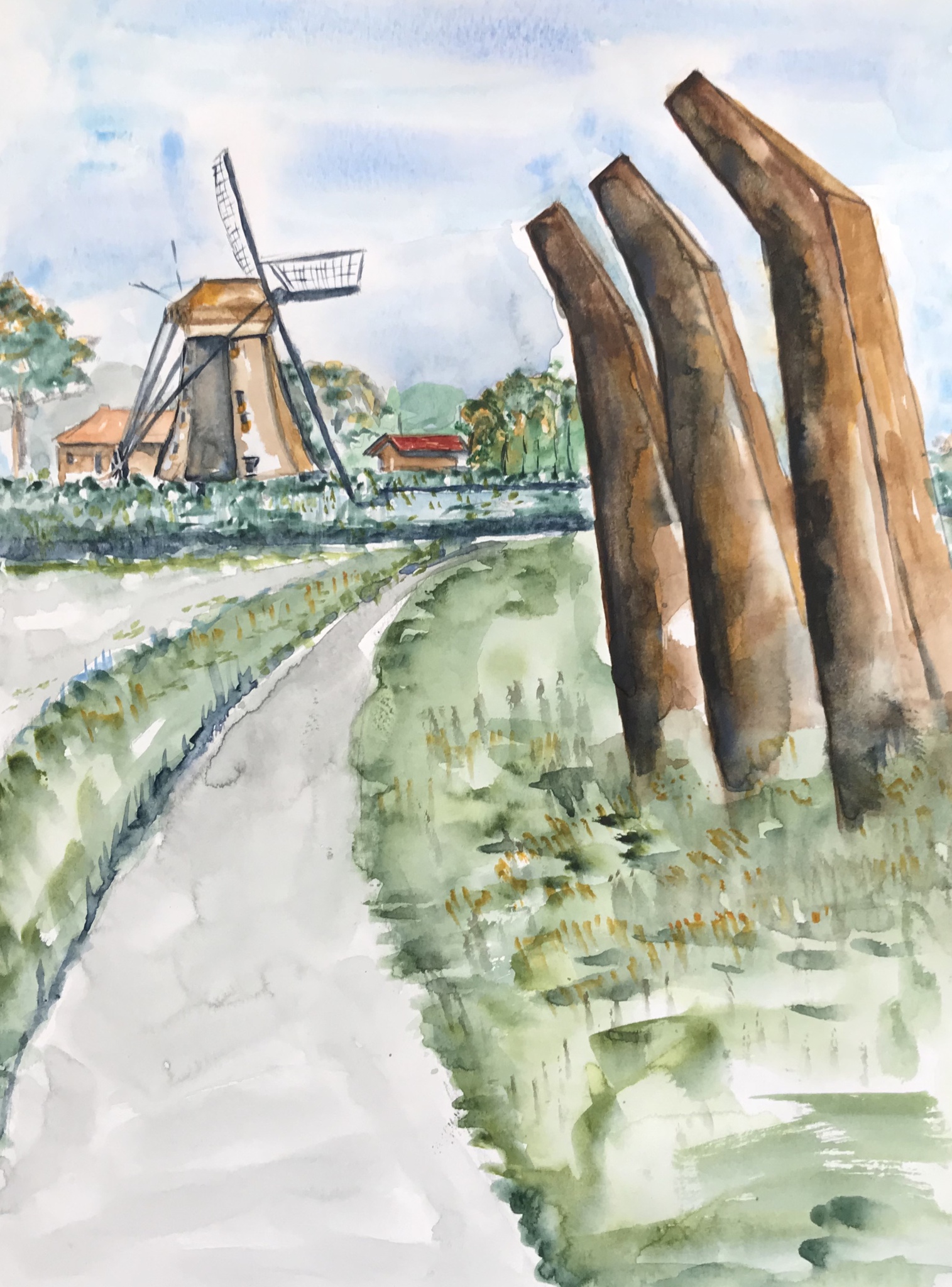 Art Aquarel Kunst Dorp Lente Molen Lake Spring Village Meren Mill Rotte Bleiswijk