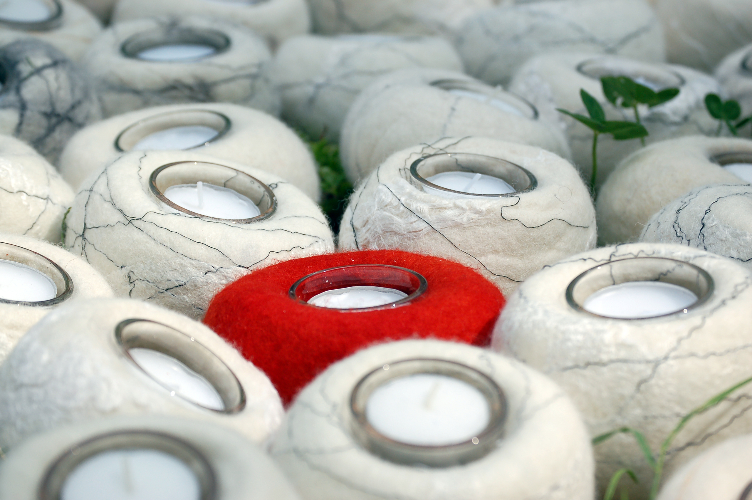 LICHTPUNTJES Ieder mens komt tijdens zijn leven leuke en minder leuke dingen tegen. Een “lichtpuntje” kan staan ter herinnering van een leuke gebeurtenis ter bemoediging, om wat al is bereikt, en om vooral door te gaan ter nagedachtenis ,als herinnering aan een dierbare of om ergens bij stil te staan Zoals de wol het wisselen van de seizoenen heeft ondergaan, en het tot vilt is verwerkt, zo kan een Lichtpuntje een symbool zijn voor het verstrijken van verschillende gebeurtenissen en een dierbare herinnering worden. Marian Kastelein