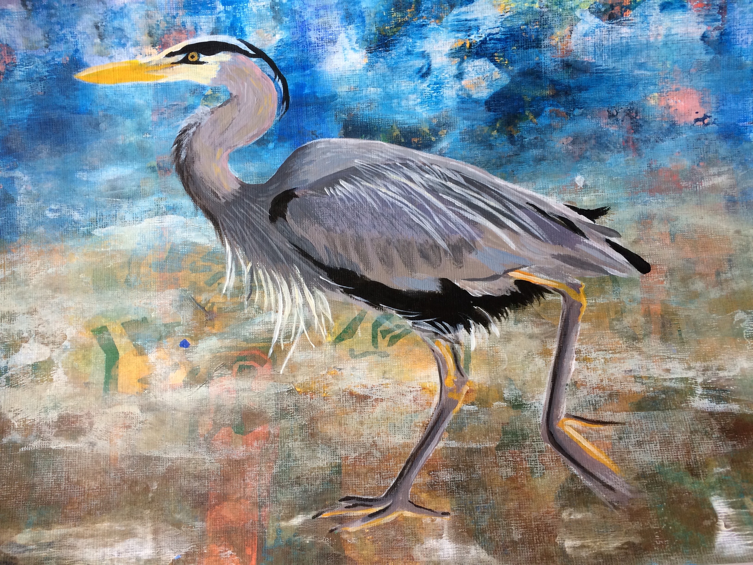 Schilderij Acryl Vogel Reiger