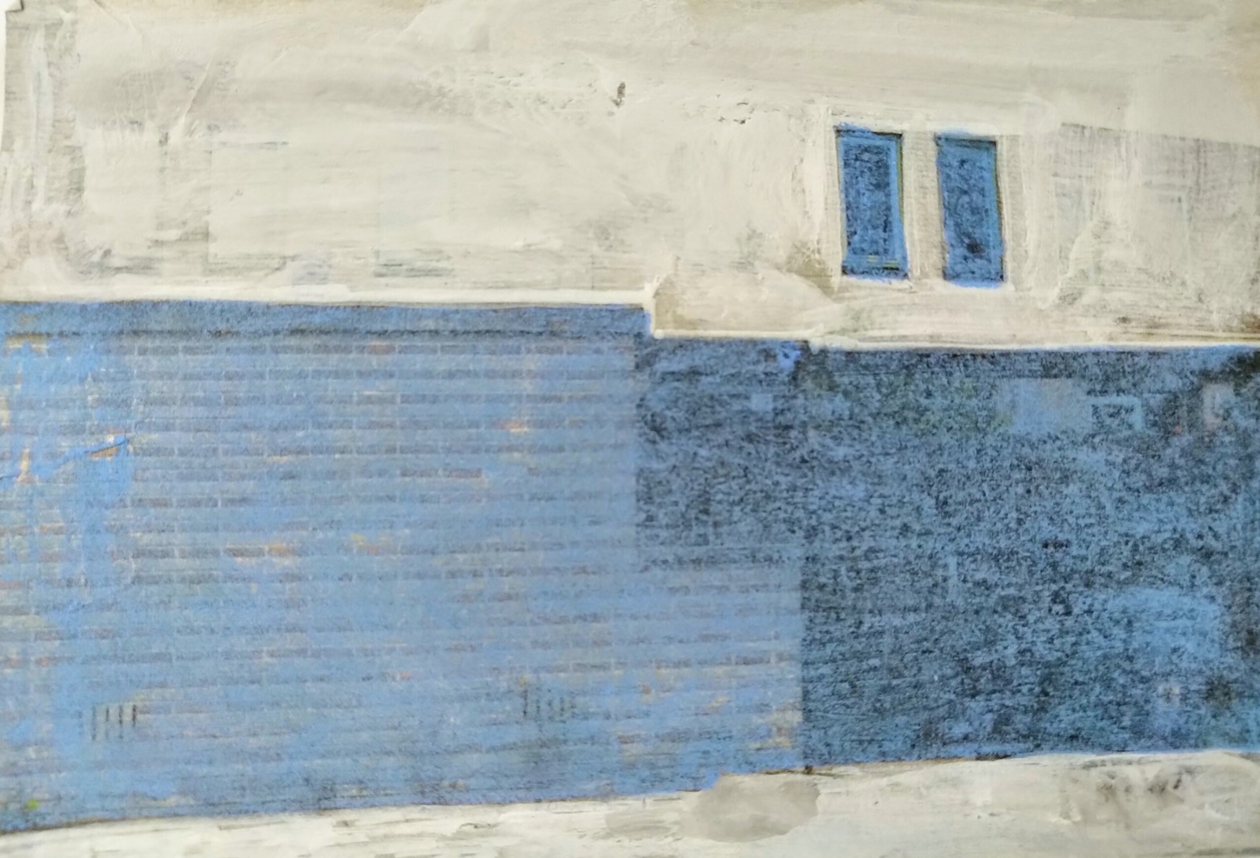 Bestaande foto, witte acrylverf, blauw krijt