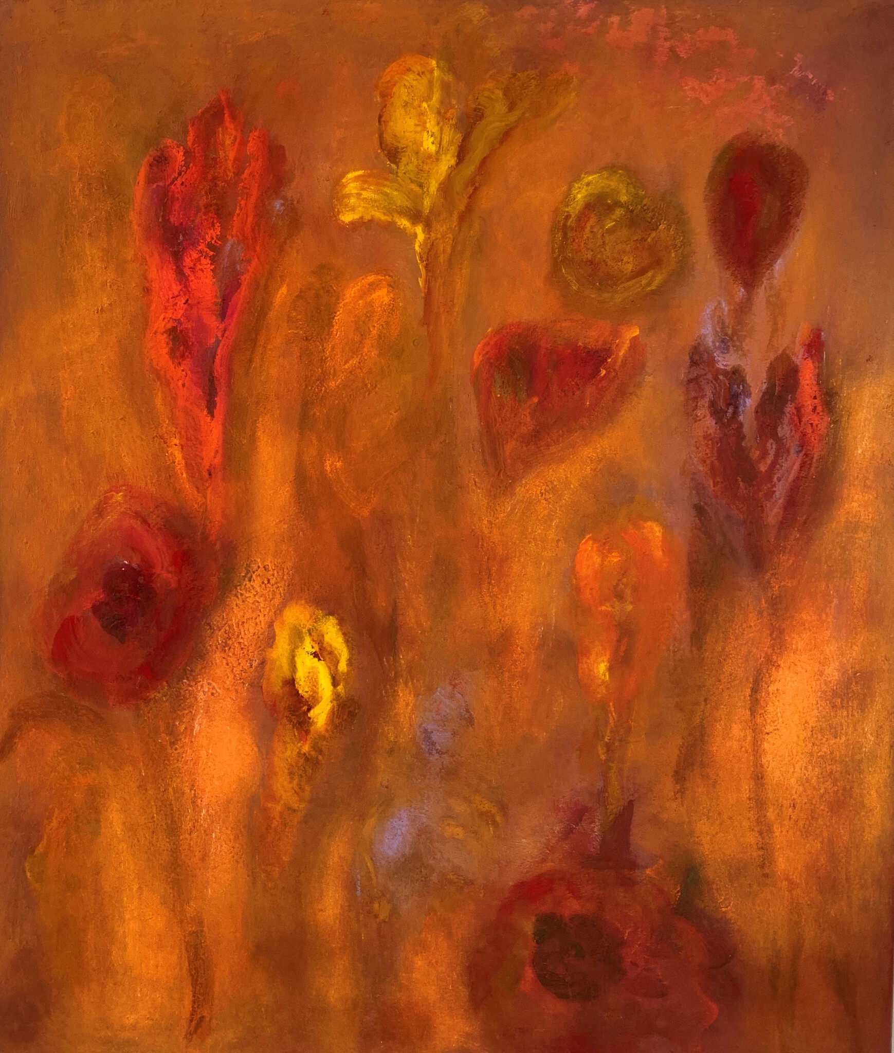 Schilderij Abstract Rood Oranje Geel Anneke Eitempera Schie