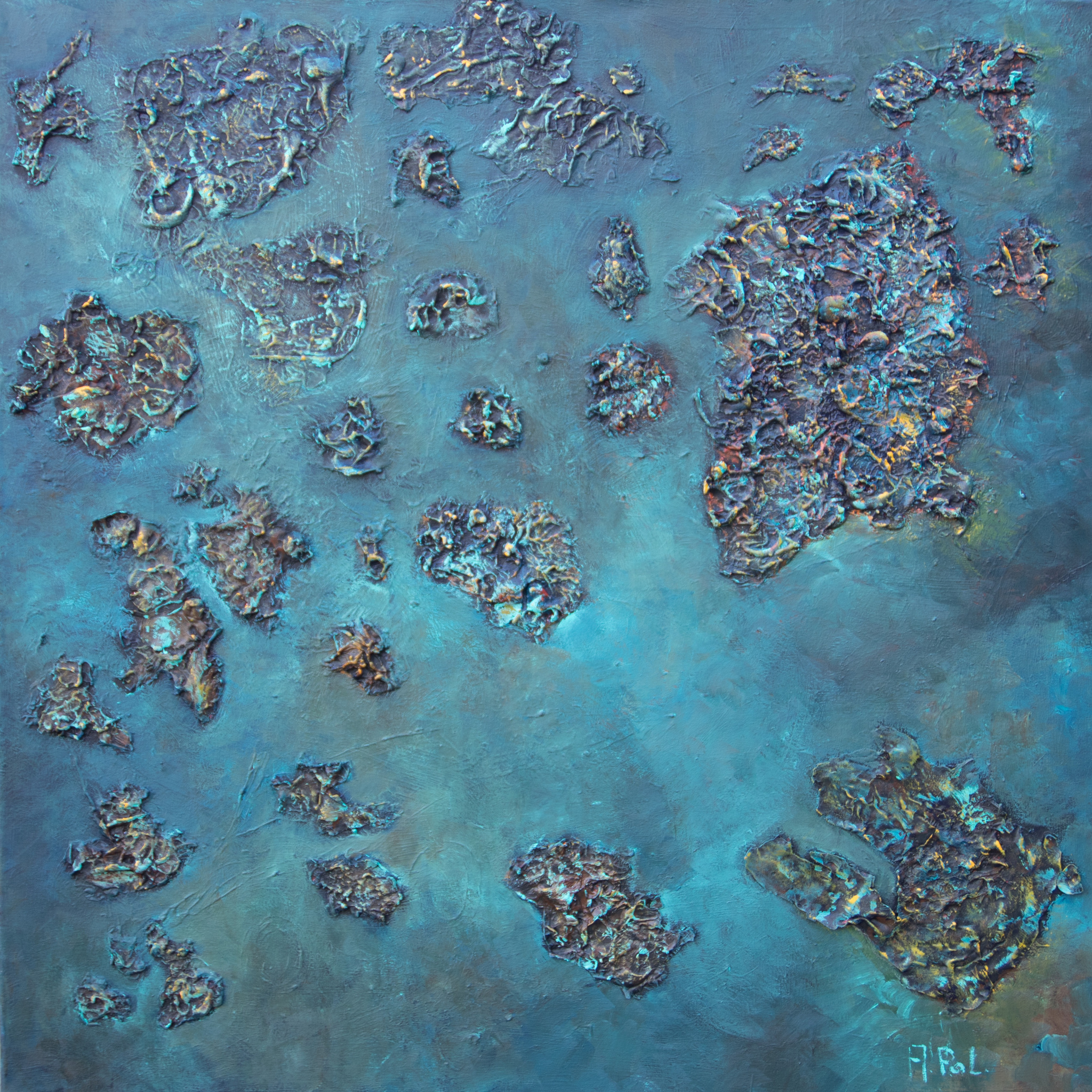 Acryl op doek. Doorwerkt schilderij in baklijst