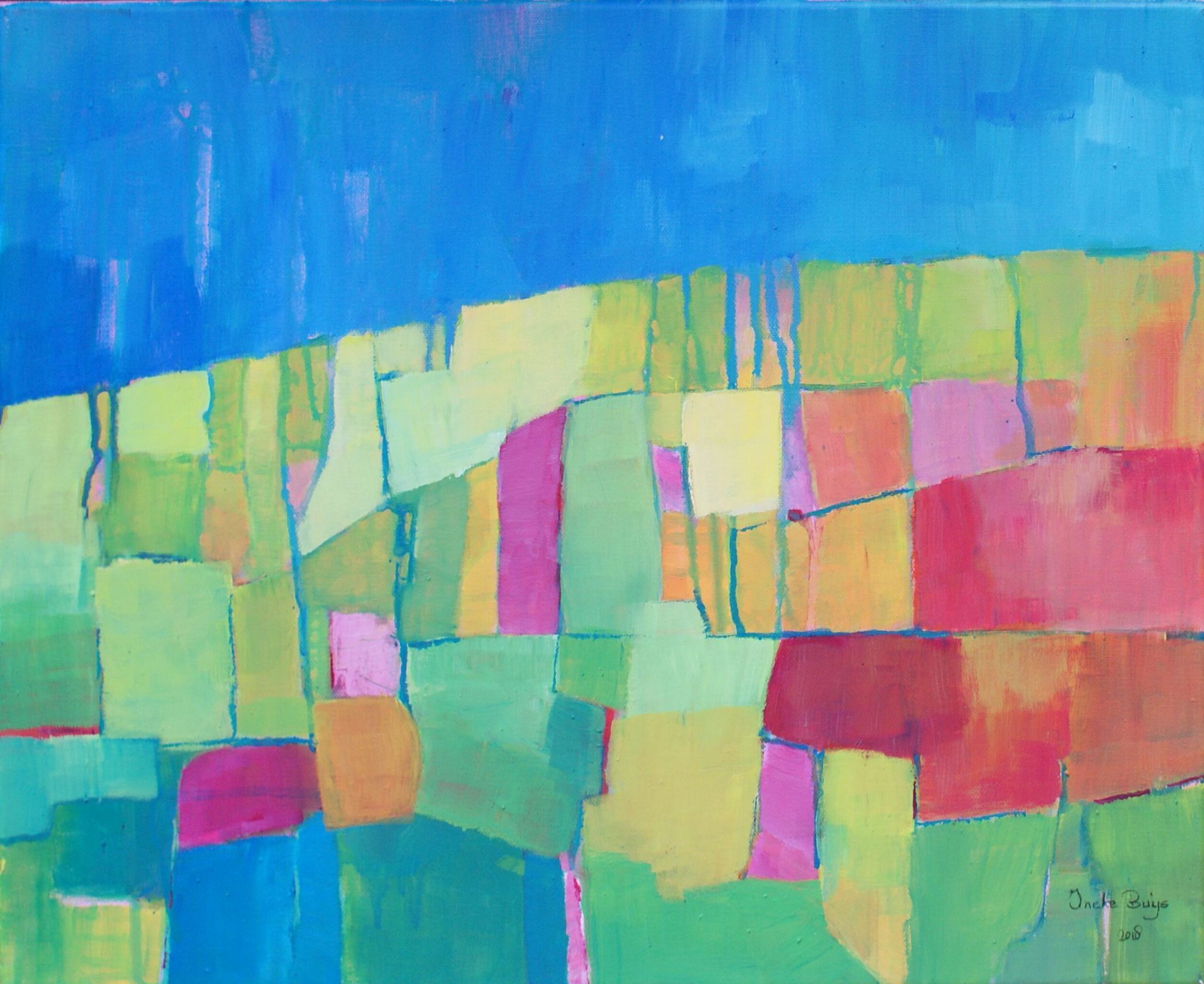Acryl schilderij in vrolijke kleuren