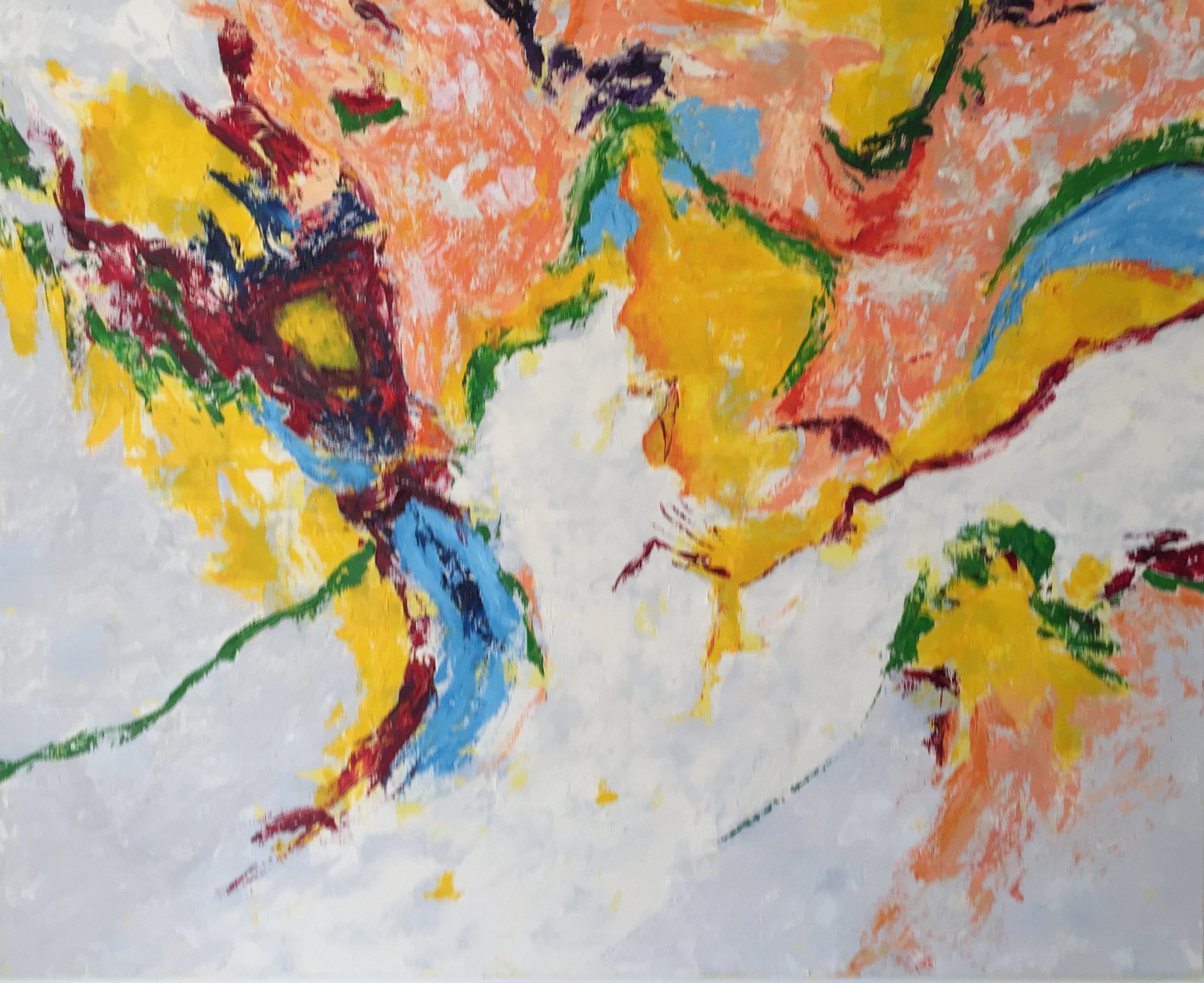 Wit Grijs Oranje Geel Landschap Blauw Groen Kleurig Vrolijk Lente Donkerrood