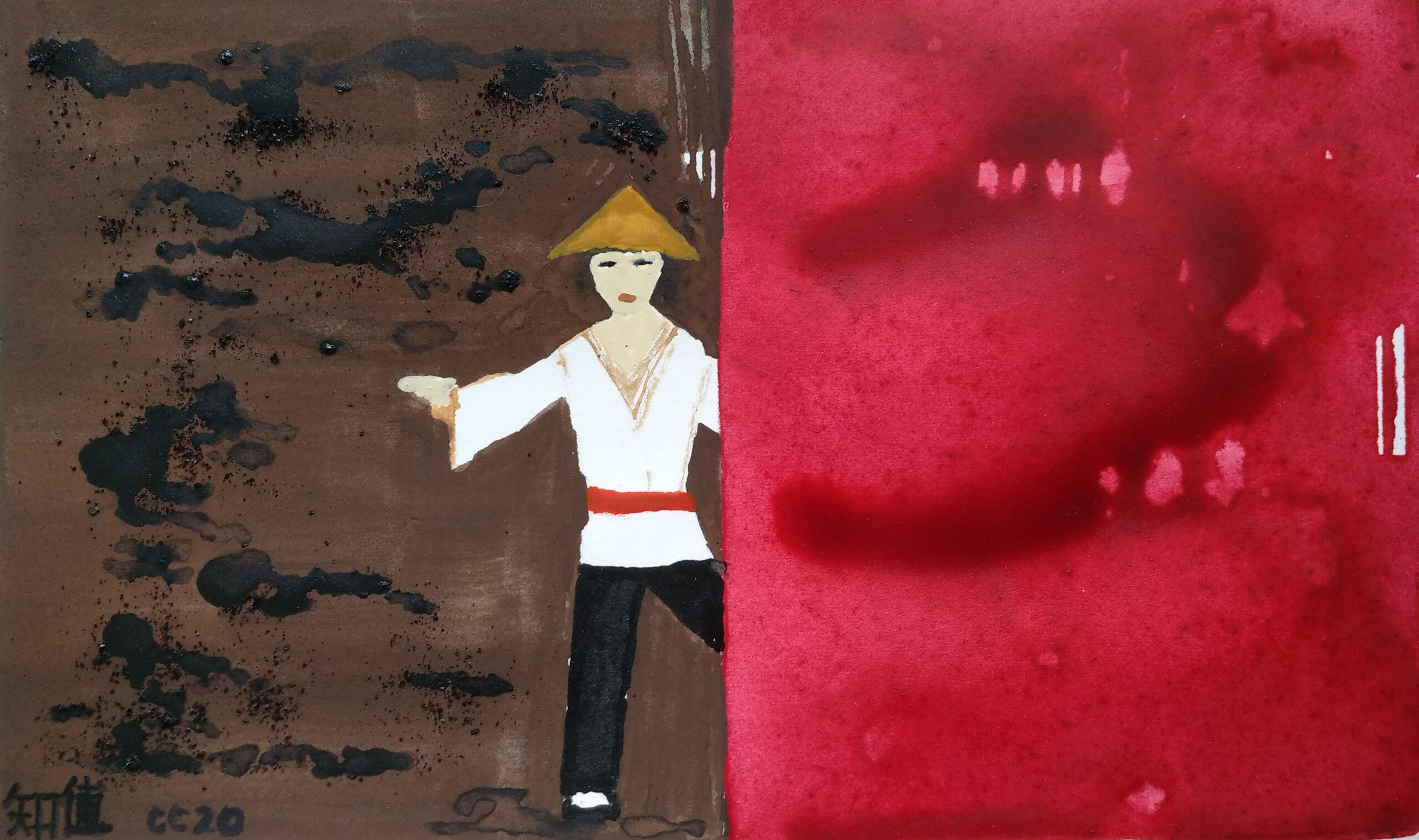 The fourth step is grasping a truth. Mixed media Chinese ink, bister, gouache and watercolour.