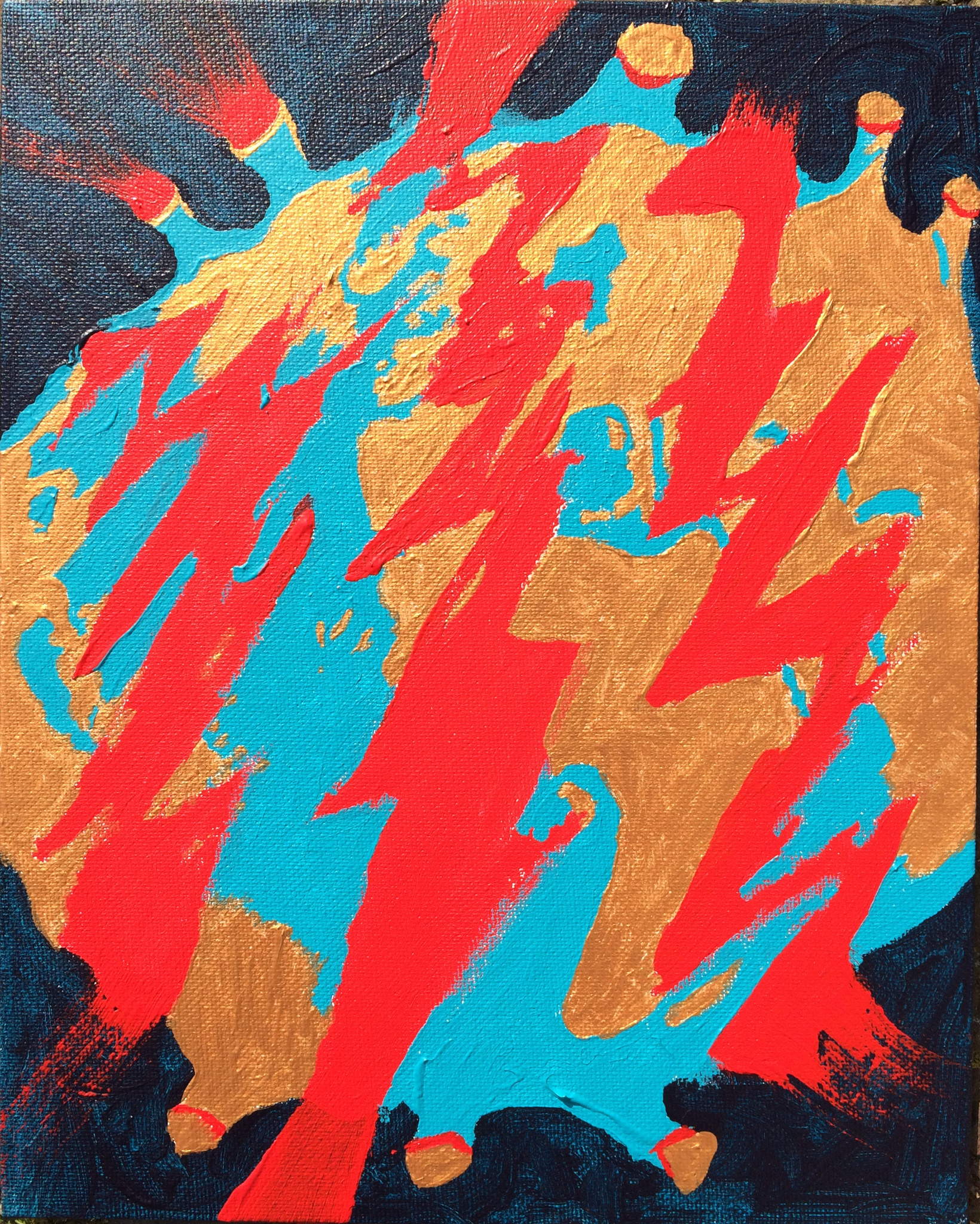 acryl en goudverf op canvasboard, afm 30 x 24 cm - ingelijst € 450