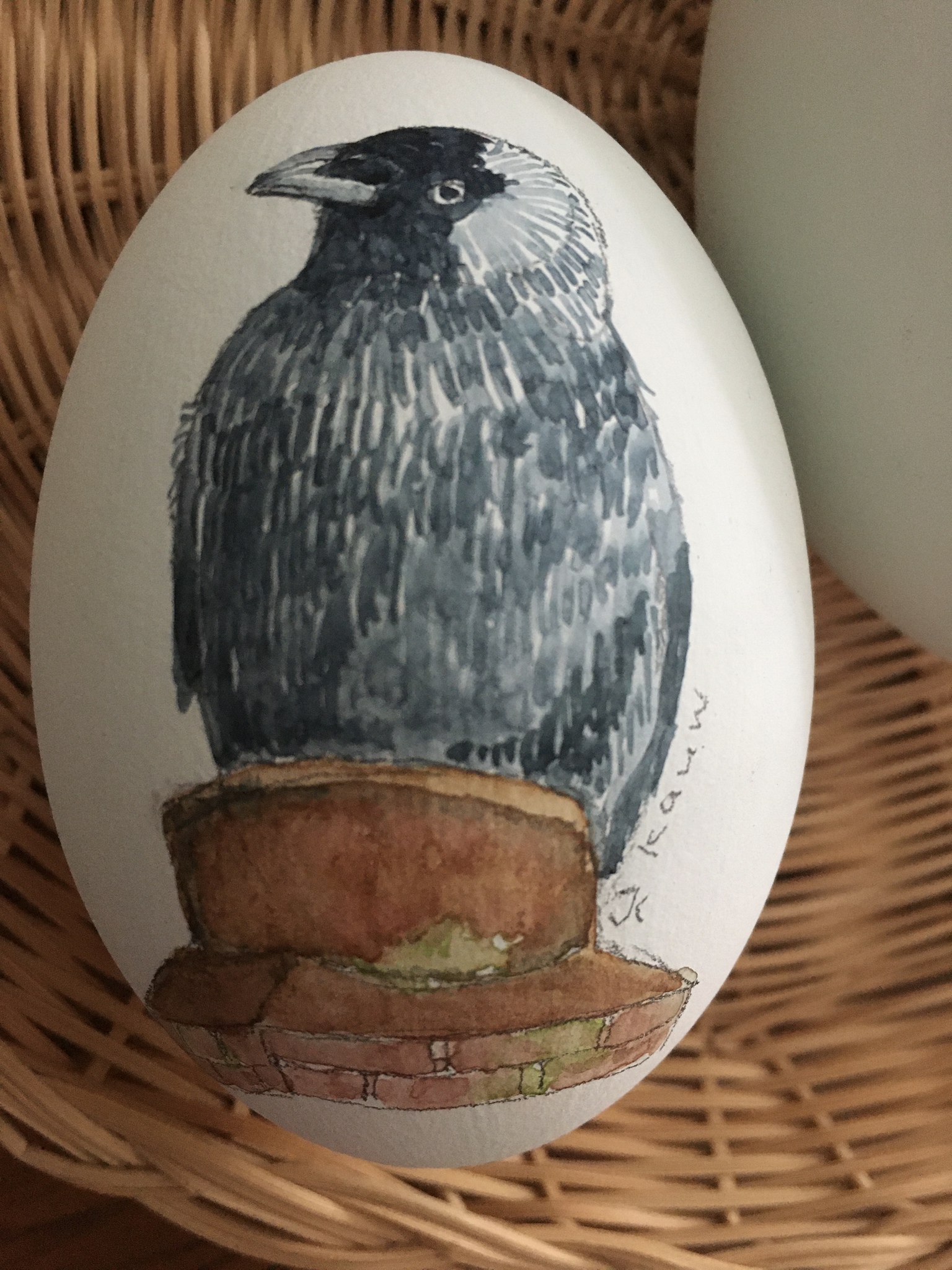 Vogel Kauwtje Schoorsteenpijp Ganzenei Aquarel Ei Realistisch Natuur