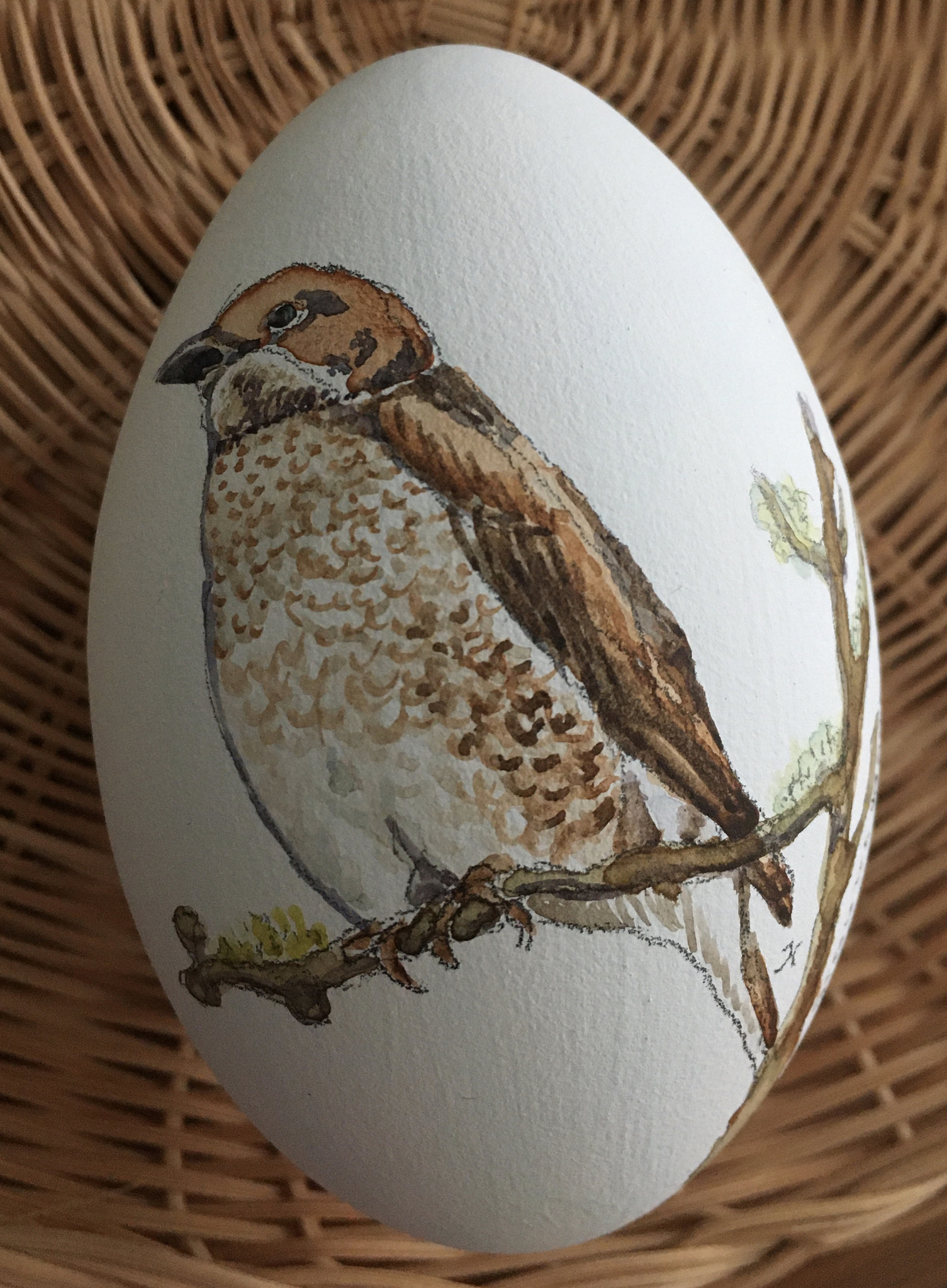grauwe klawier geschilderd in aquarel op ganzenei