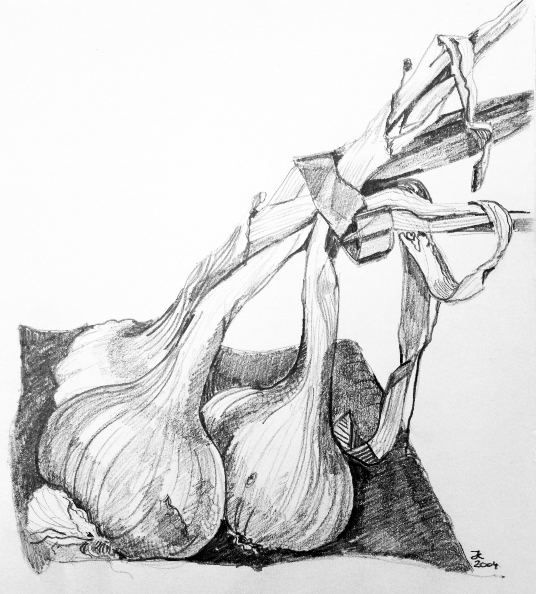 Bosje Uien Potlood Keukenstuk Natuur Realistisch Papier