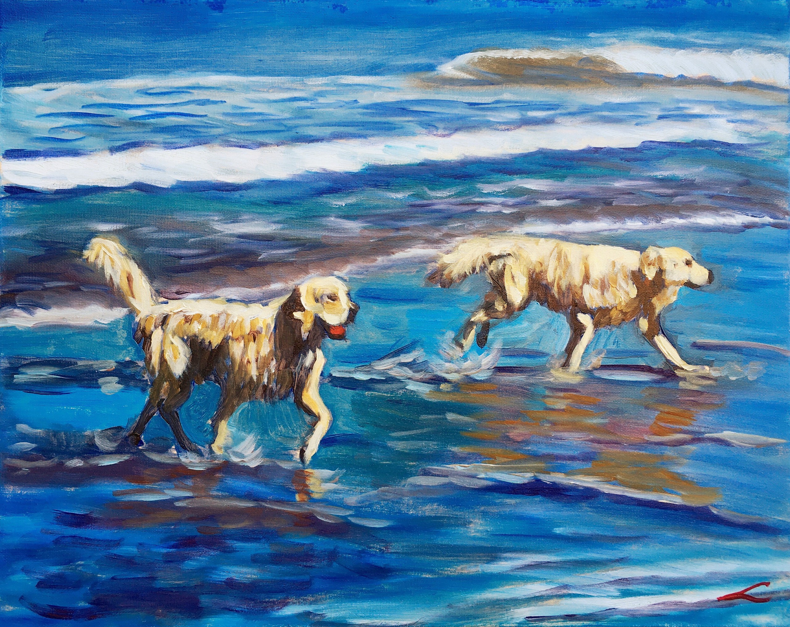 Natte honden bij de zee