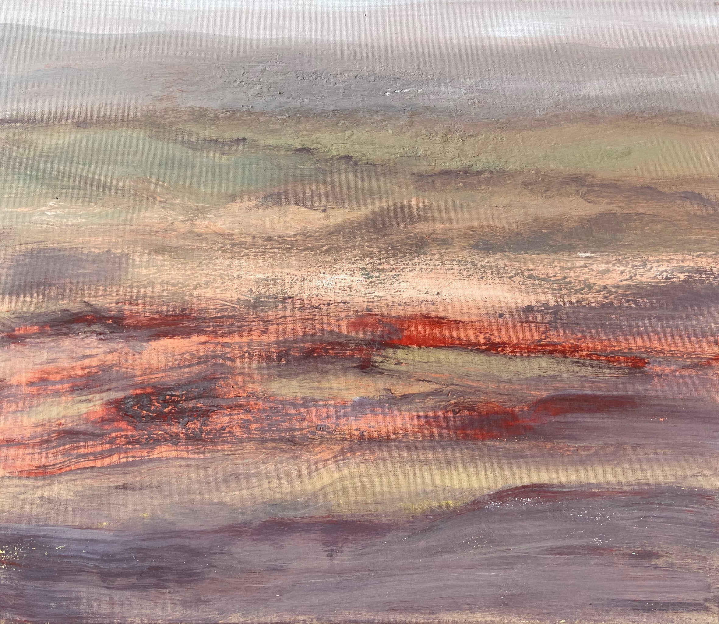 Schilderij Landschap Paars Groen Roze Anneke Eitempera Schie