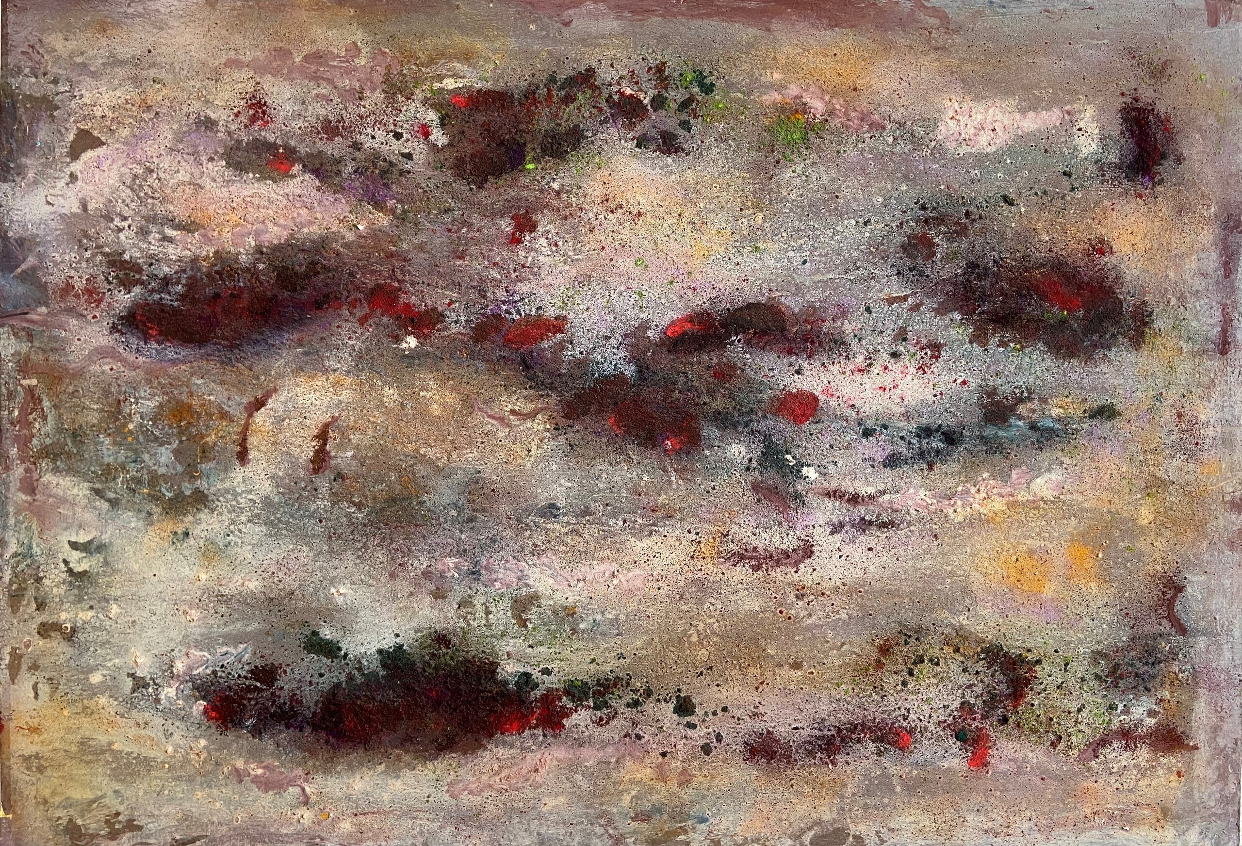 Schilderij Abstract Rood Geel Groen Roze Anneke Eitempera Schie