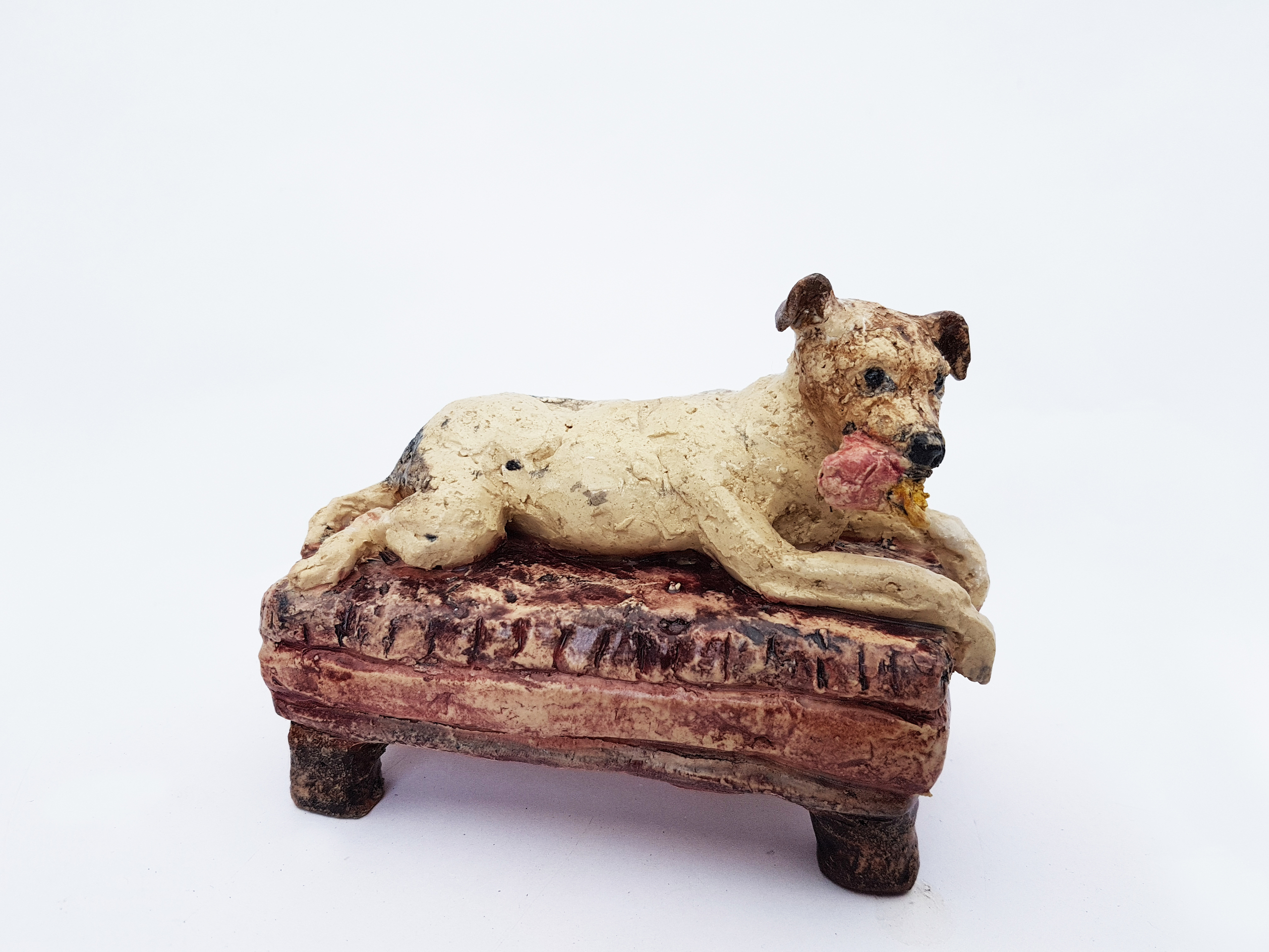 Klei Hond Keramiek Knuffel Bankje Glazuur Boerenfox