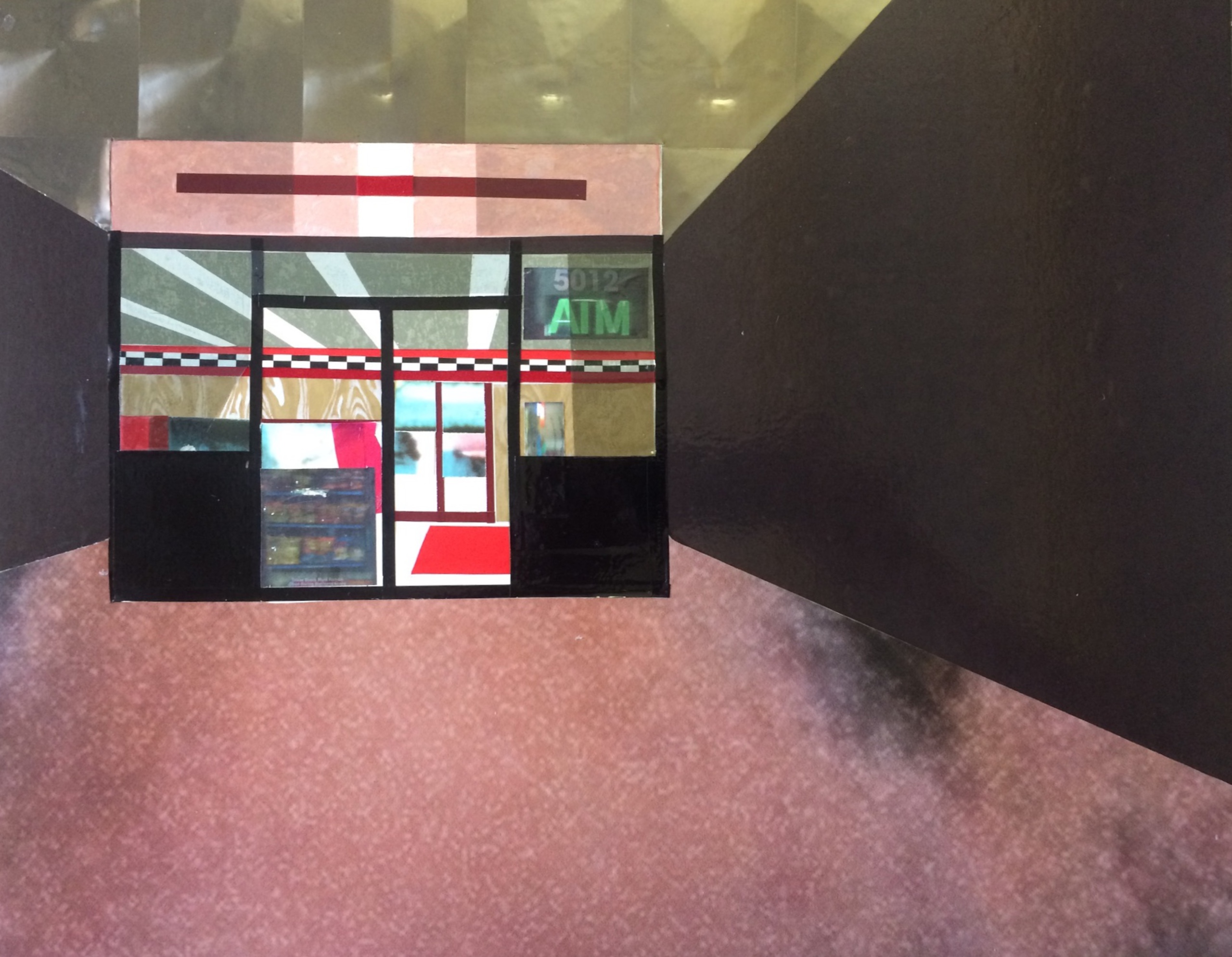 Collage met plakplastic op multiplex paneel. afgewerkt met epoxy.