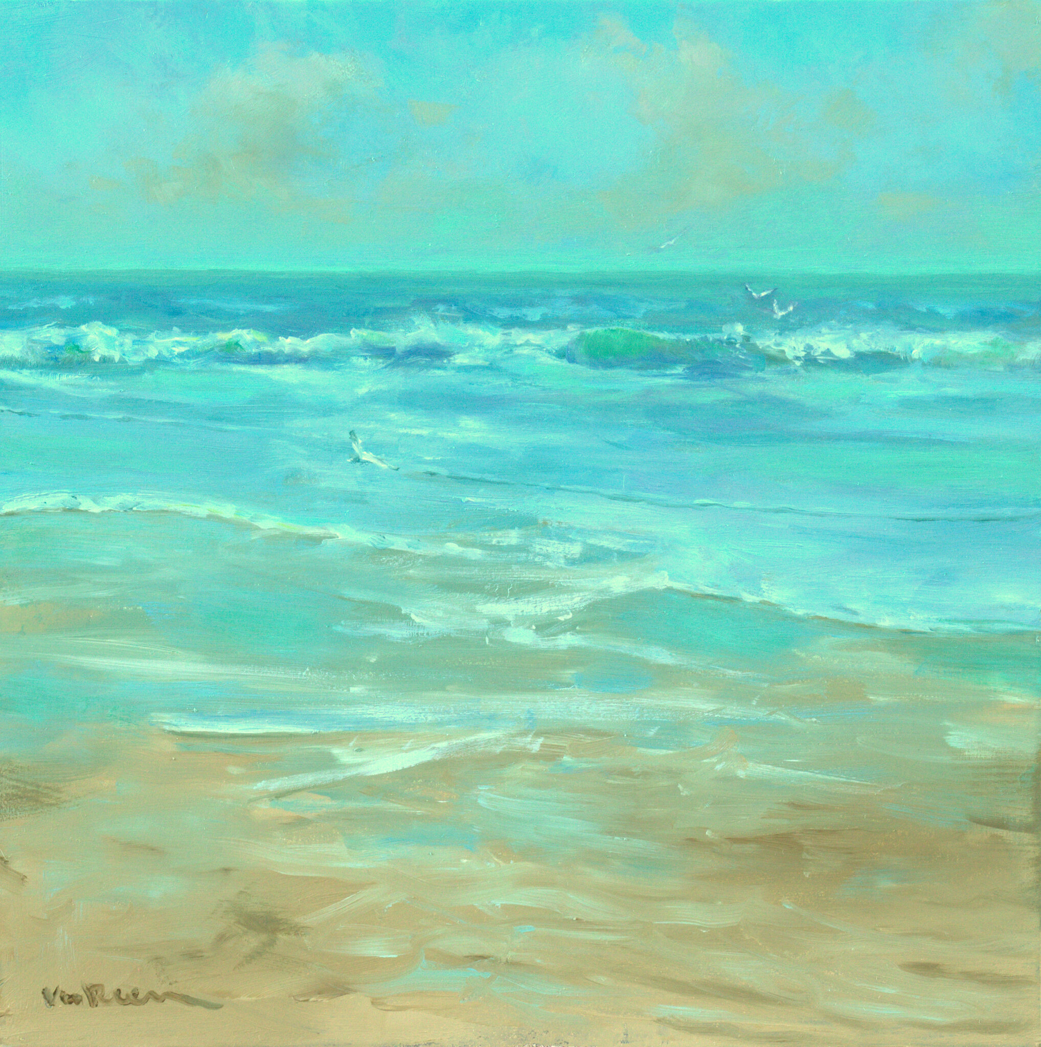Roeland van Reem schildert met olieverf op linnen of op paneel . Belangrijke thema's zijn; bloemstilleven, strand, zee, sneeuw- en polderlandschap.