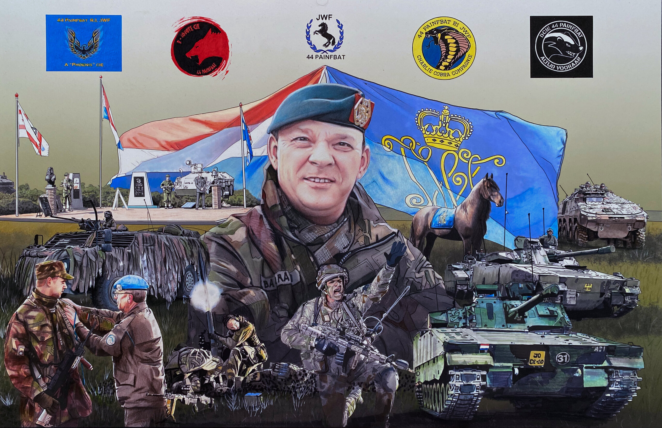 Afscheidscadeau aan Lkol Dennis Bachrach bij zijn commando-overdracht van het 44e Pantserinfanteriebataljon.