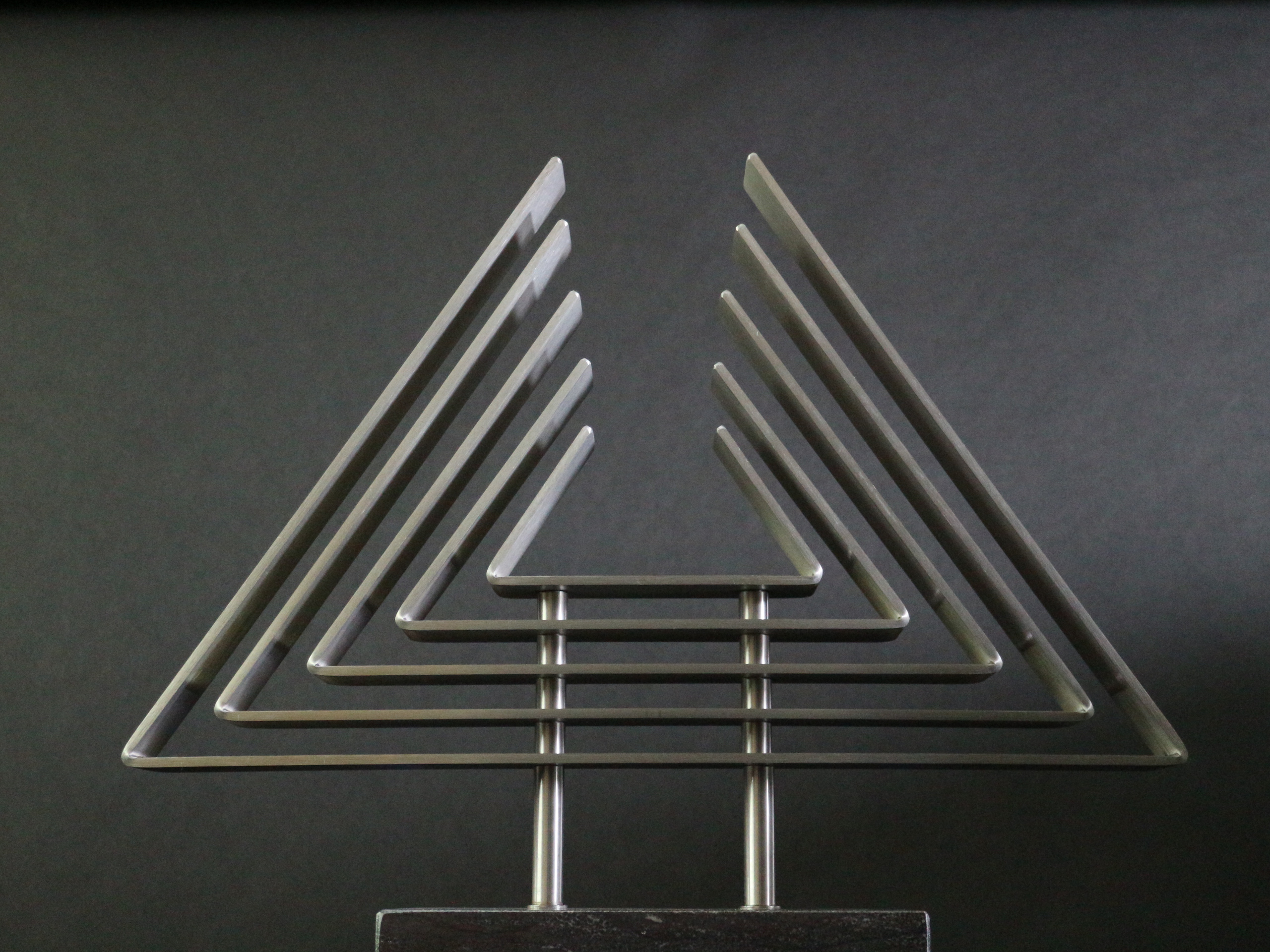 Het 5e werk in de serie Rhythm's. 5 cm breed, 4 mm dikke strips geven het ritme aan. De strips zijn gemonteerd met behulp van draadend en RVS busjes op een hardstenen ondergrond.