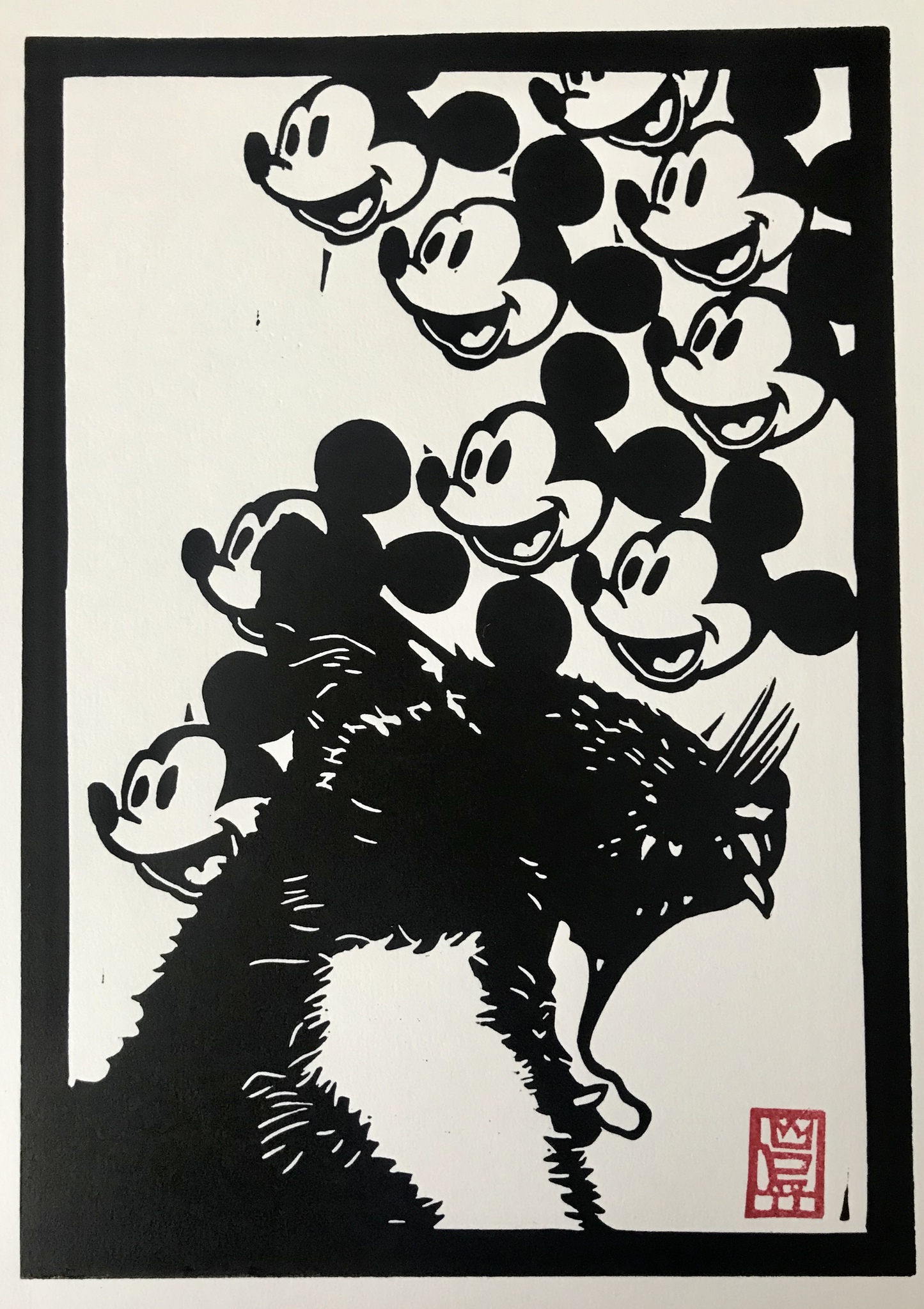 Zwart Inkt Cat Print Druk Hoogdruk Linosnede Us Disney Printing Linocut Mickey Prent Mouse Rex Printmaking Mickeymouse Printmaker Grabado Linocutprint Hanko Printmakers Printingproces