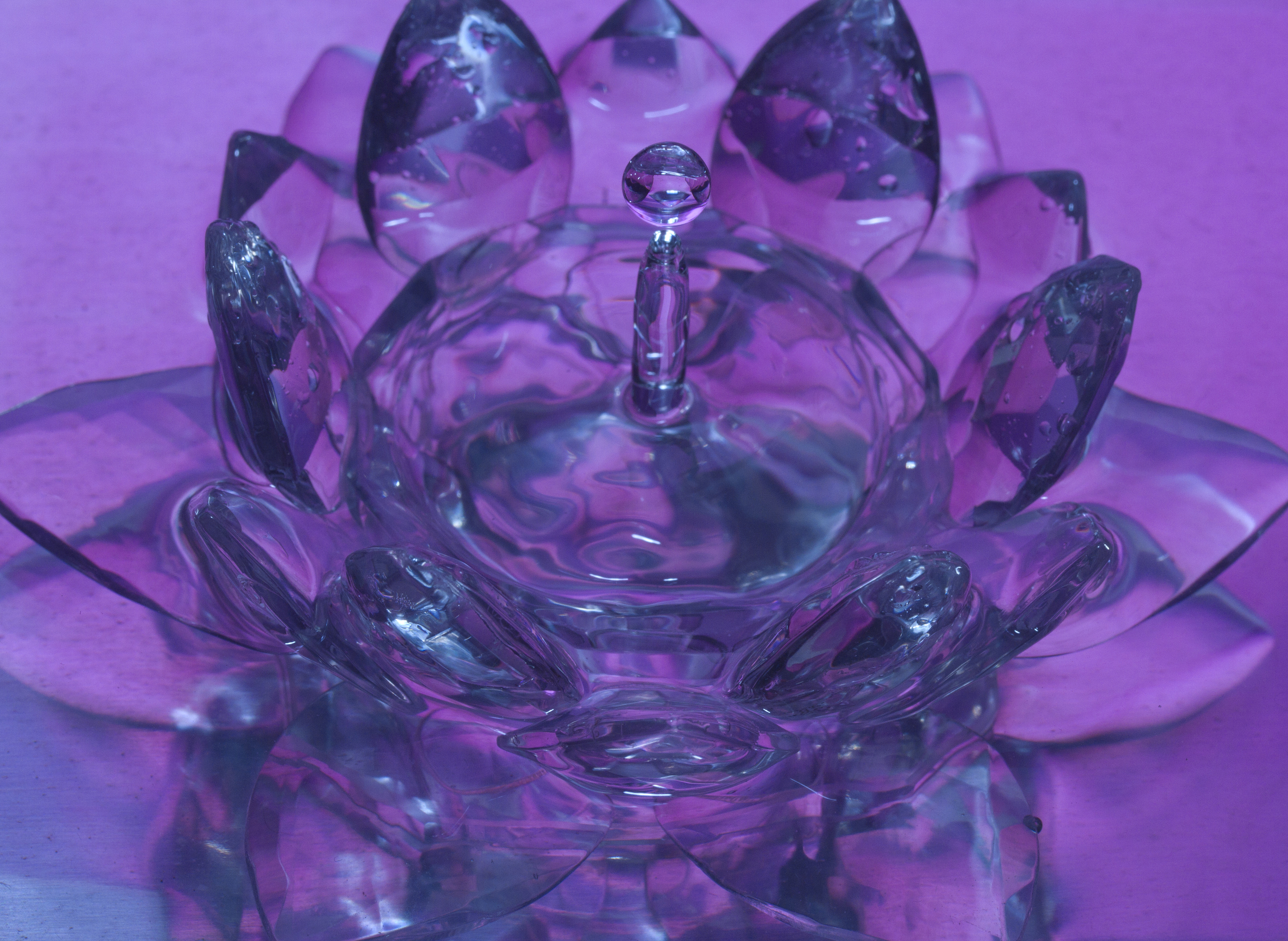 Macro foto van een waterdruppel in een glazen waxinelichthouder. Geprint op aluminium.