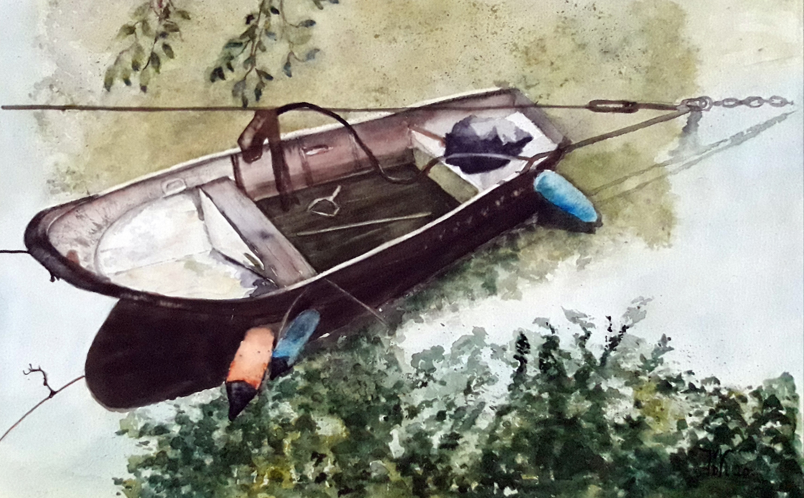 Aquarel 40 x 50cm inclusief passepartout. Stilleven op het water