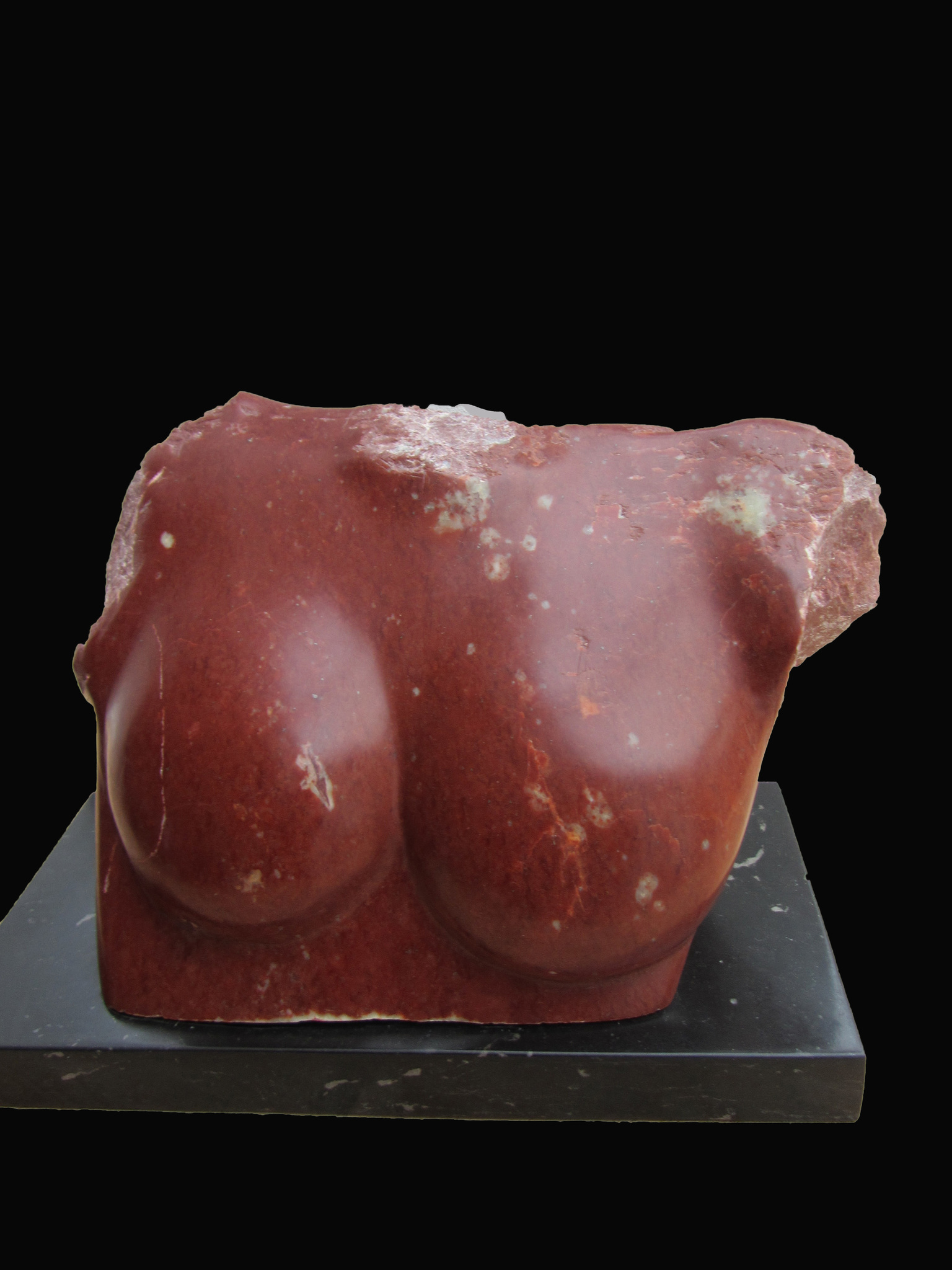 Dit stuk rood serpentijn was voorbestemd voor dit beeld. De vorm zat er al in.Ik heb alleen de voorkant bewerkt.