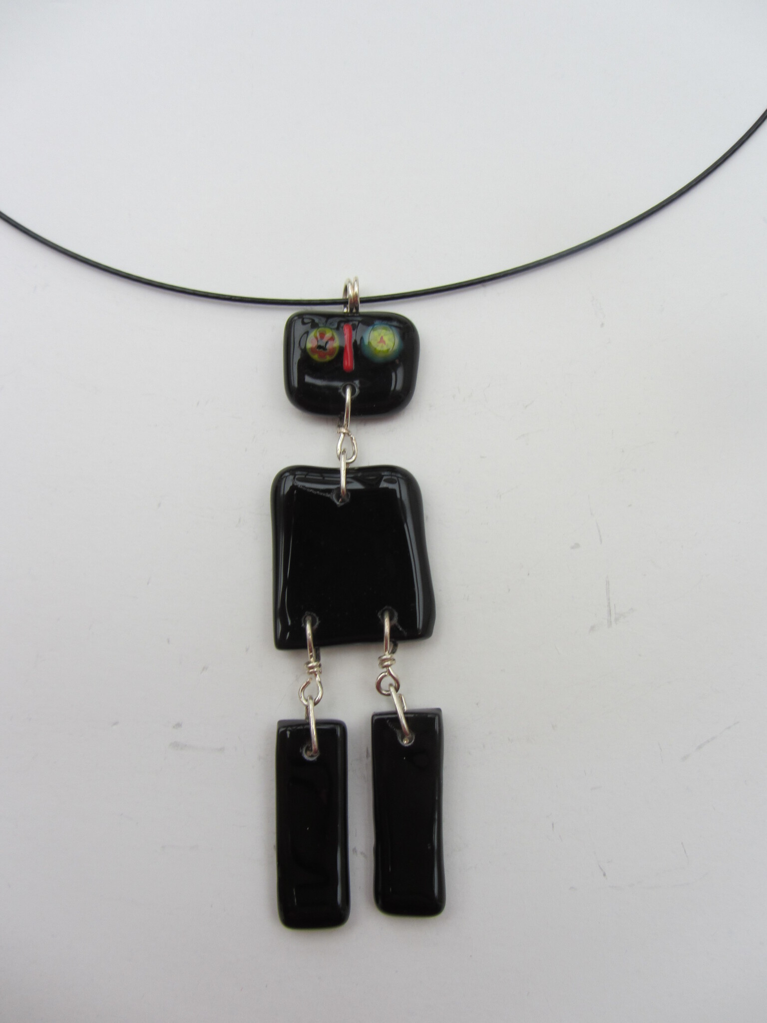 leuke, opvallende hanger aan flexibele zwarte spang. lekker gek.