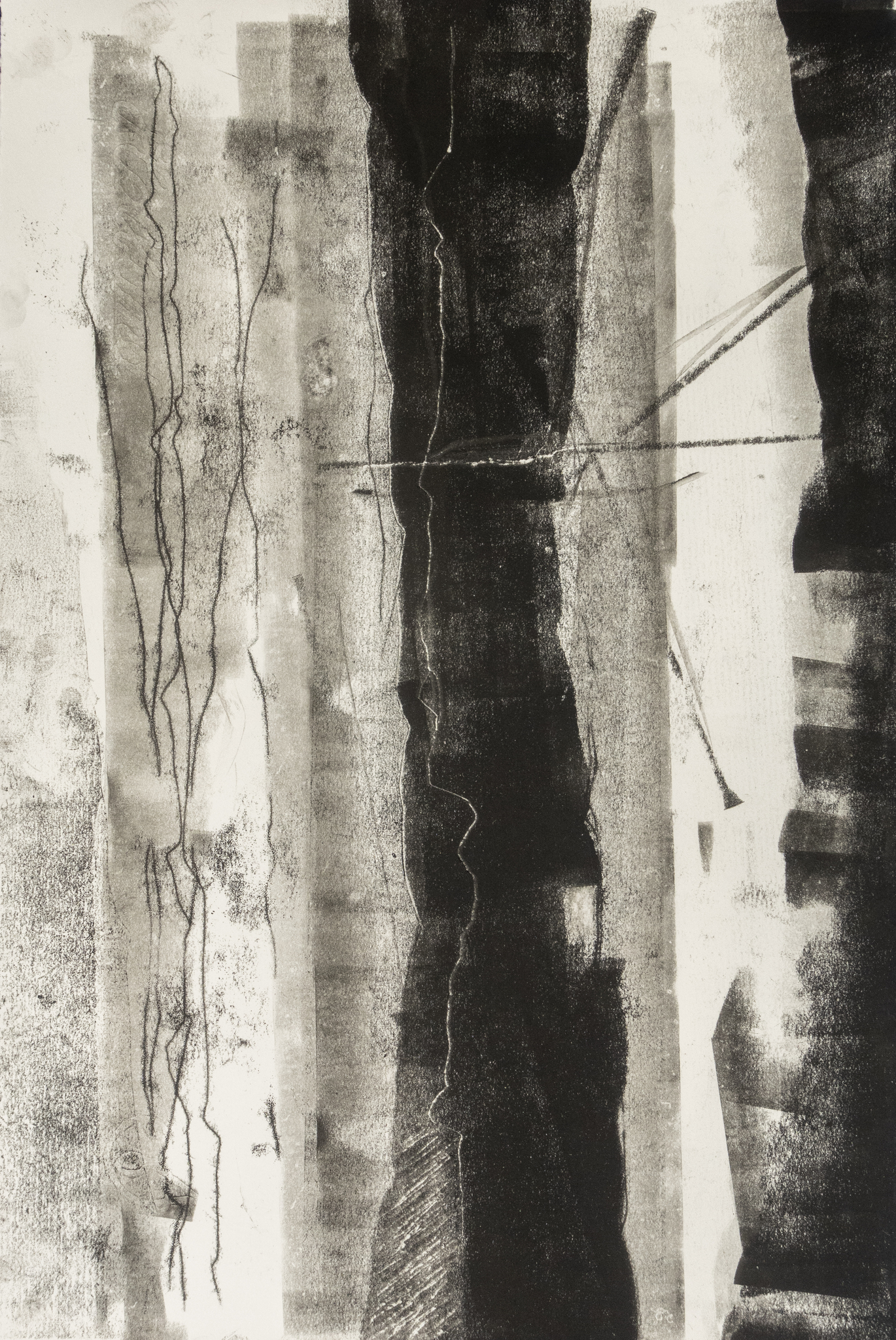 Abstract Zwart Landschap Papier Geabstraheerd Natuur Boom Grafiek Uniek Tak Monoprint