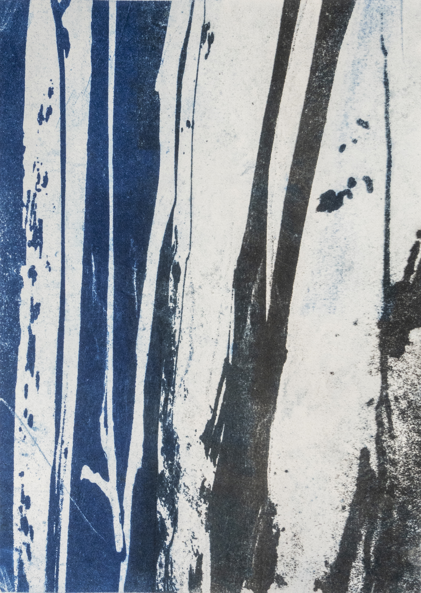Abstract Zwart Landschap Blauw Papier Geabstraheerd Natuur Boom Grafiek Uniek Tak Monoprint