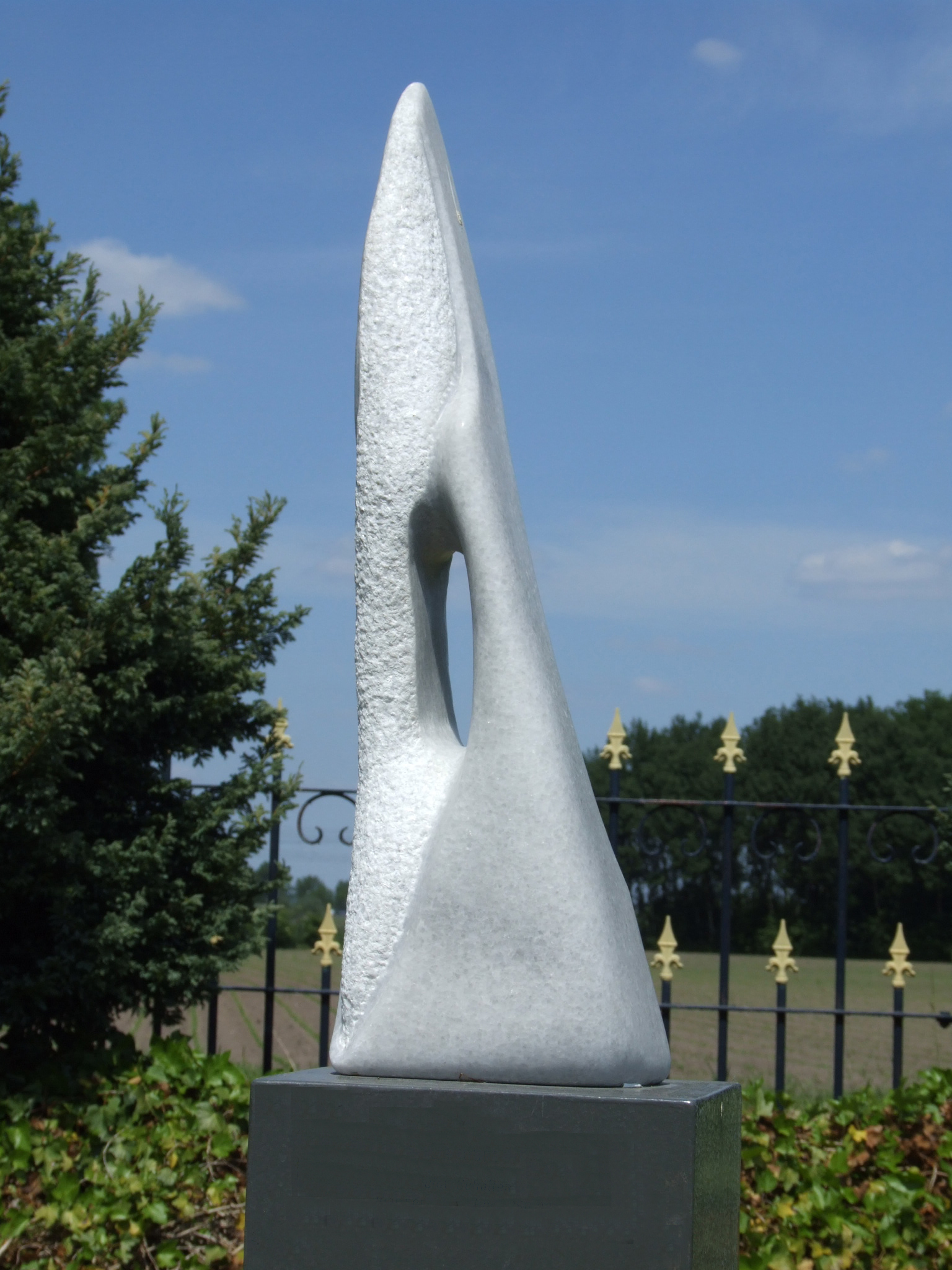 Beeldhouwen in steen is voor mij een spel van vorm, materie, ritme en ruimte in vloeiende lijnen.