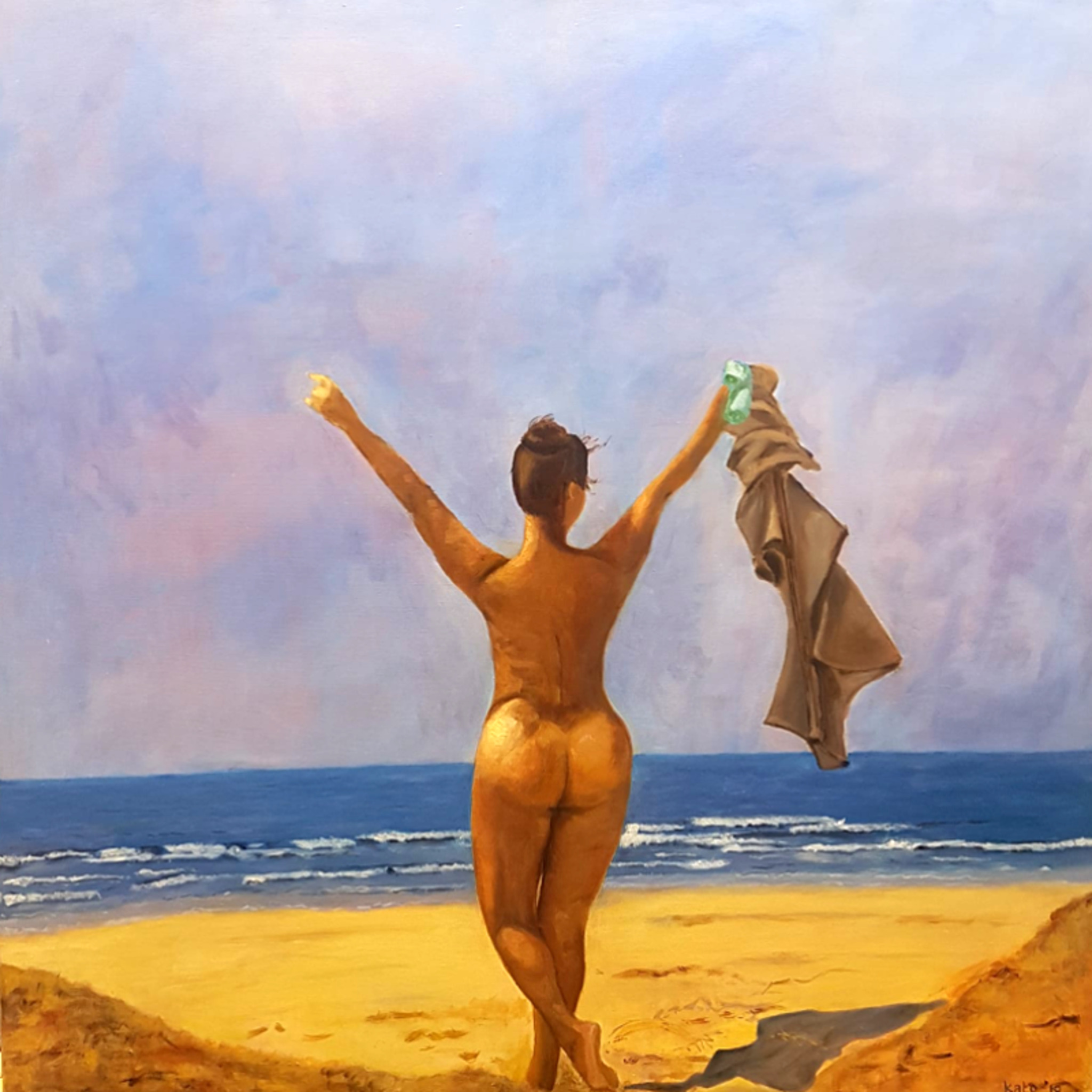 Karina Jan Wolkers Texel Naakt Strand Bloot Doek Shawl Pareo