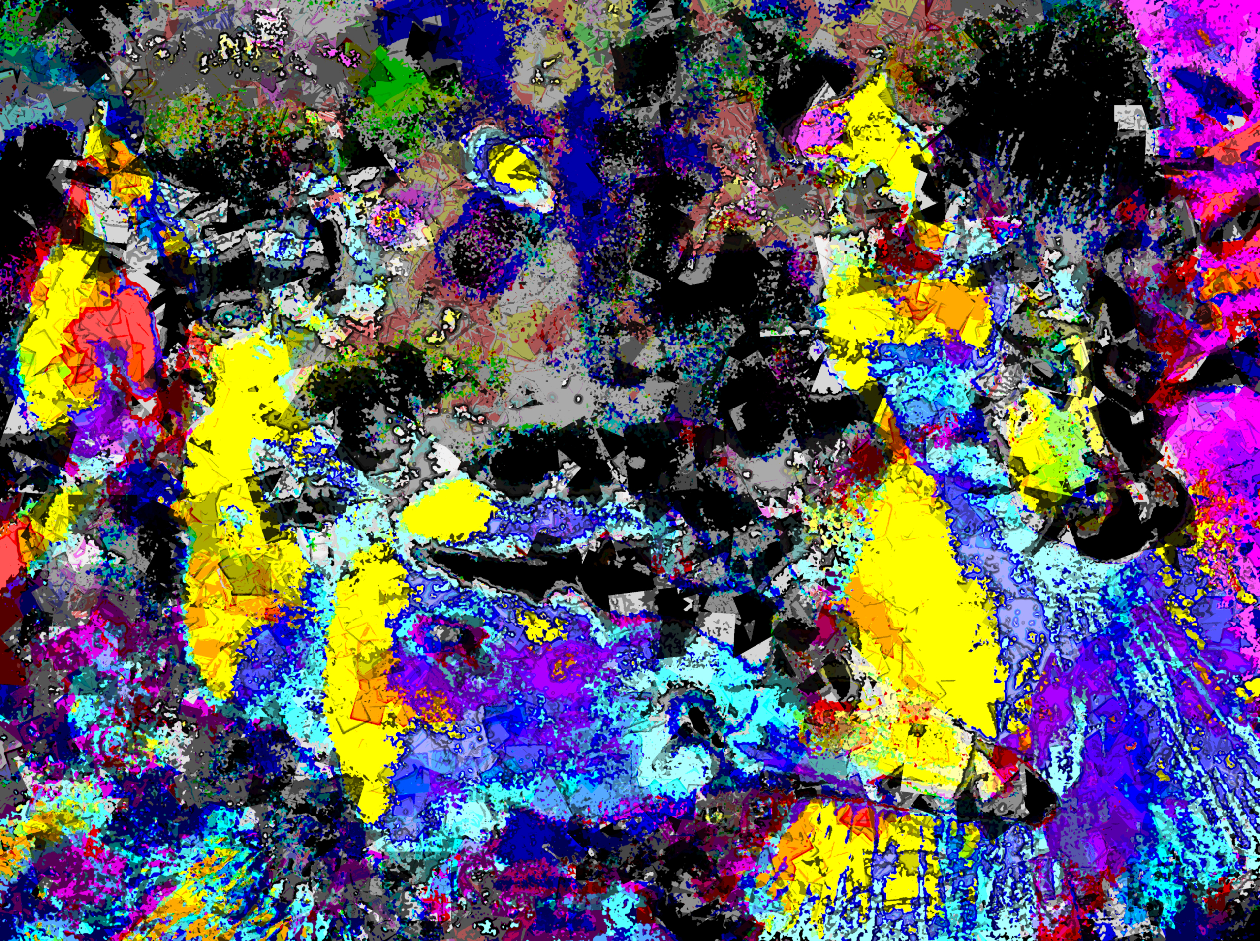 Abstract beeld van kwetterende eendenkuikens. Gebaseerd op een eigen opname die met diverse digitale technieken bewerkt is tot een abstract expressionistisch schilderij. Attentie: het werk wordt ingelijst geleverd. Zie voor meer info de pagina Levering.