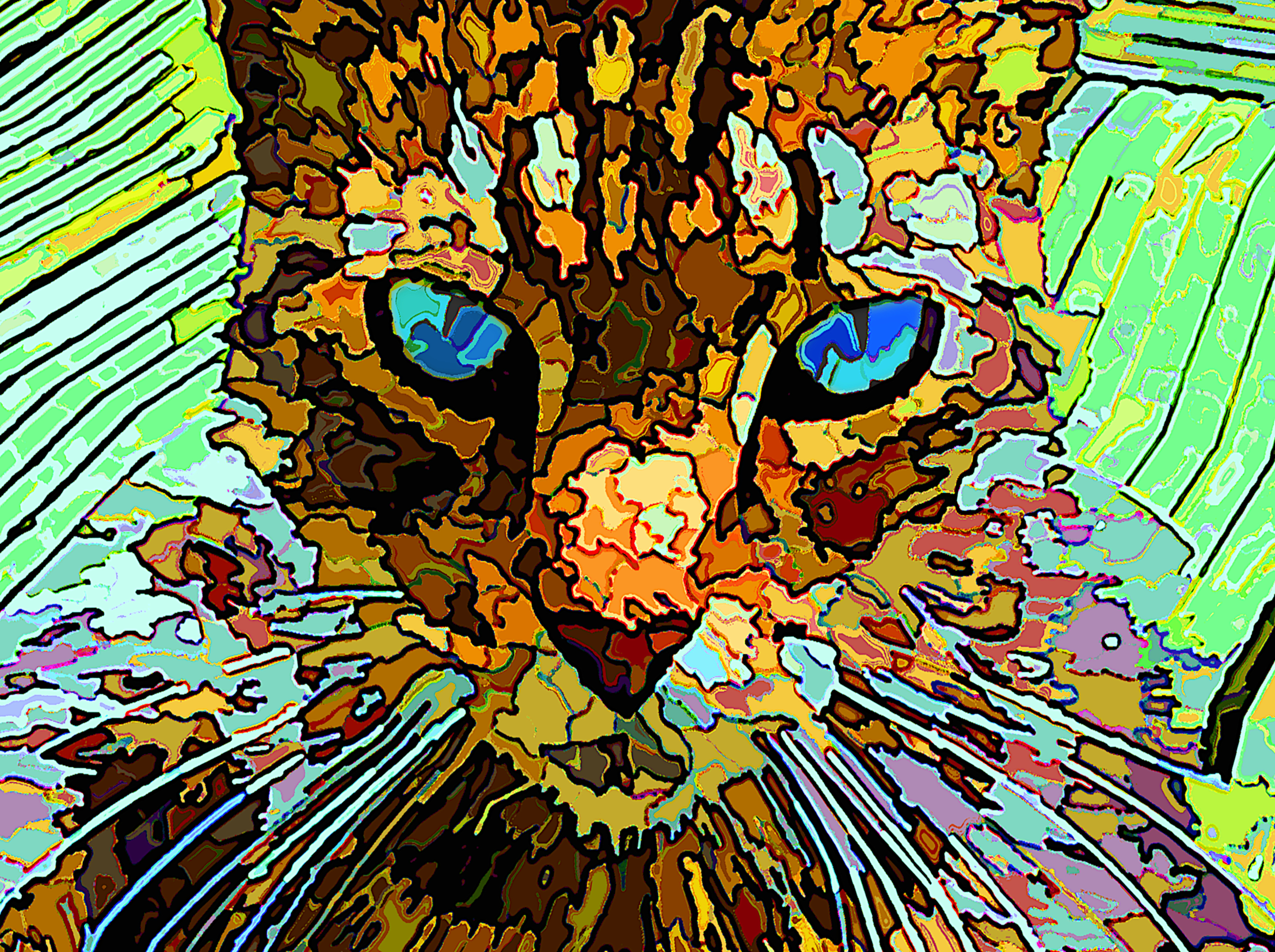 Blauw Groen Bruin Dieren Kat Poes Huisdier Natuur Expressionisme Kerst