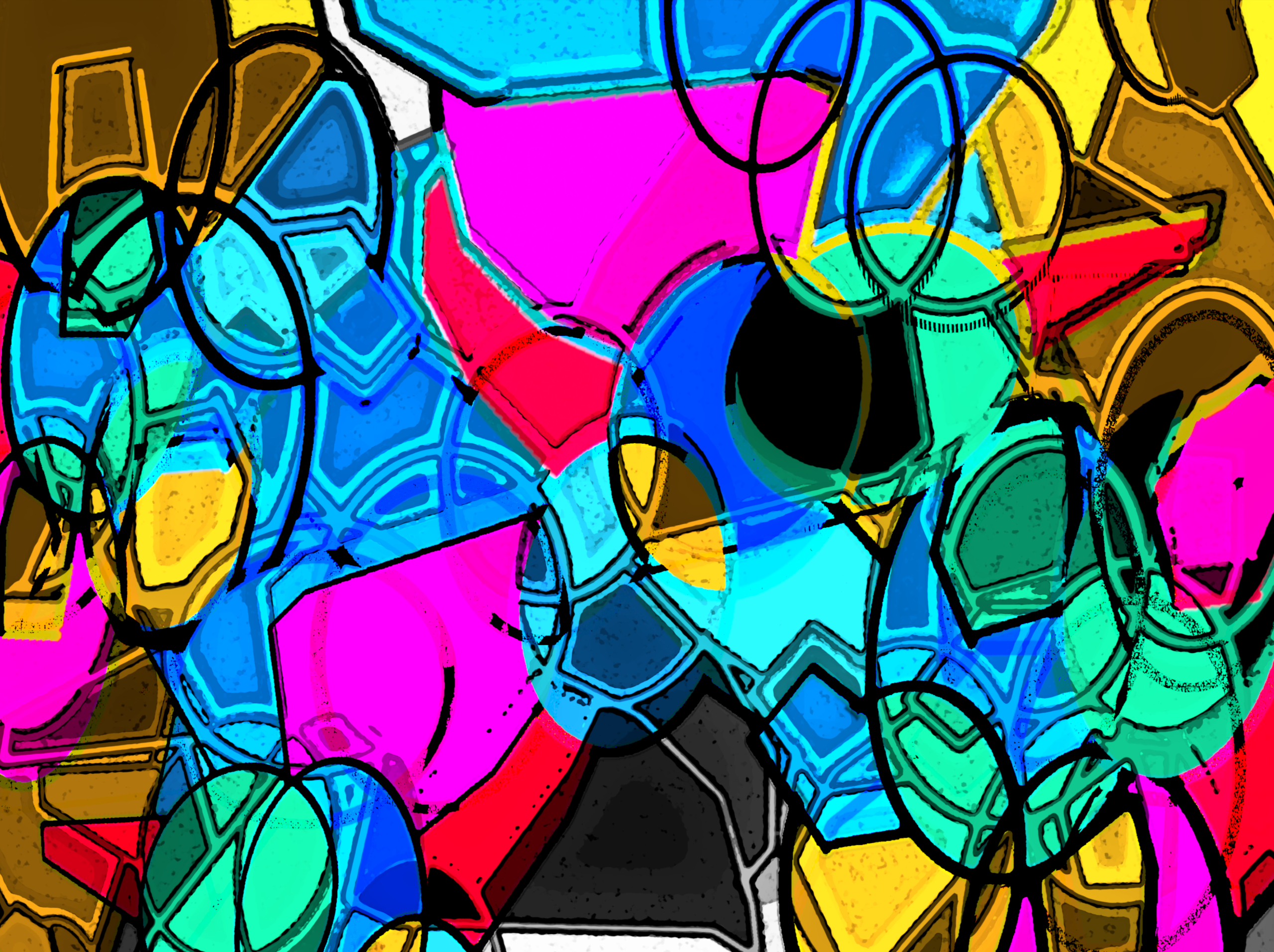 Abstract expressionistisch beeld van een groep luid kwetterende eendenkuikens. Gebaseerd op een eigen opname waaraan handmatig geometrische elementen zijn toegevoegd. Deze elementen zijn ingekleurd en bewerkt met digitale technieken. Attentie: het werk wordt ingelijst geleverd. Zie voor meer info de pagina Levering.
