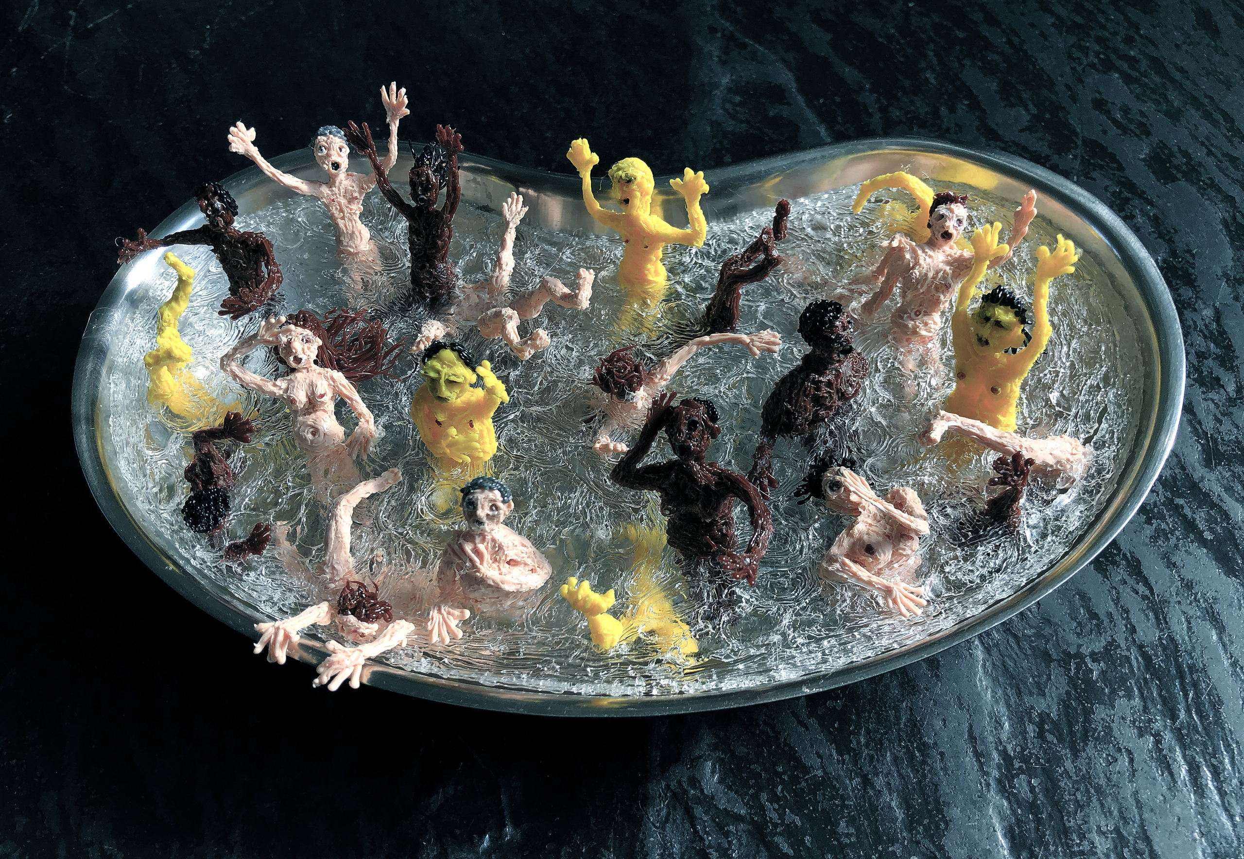 Mensen Water Kleuren Kleurrijk Van Medisch Angst Ziekte Plastic Bad Human Virus Ziek Poel Verdrinken Corona Kwispedoor Mensheid Besmet Schreeuwen Vi Spuug Mondiaal Besmetting Lieshout