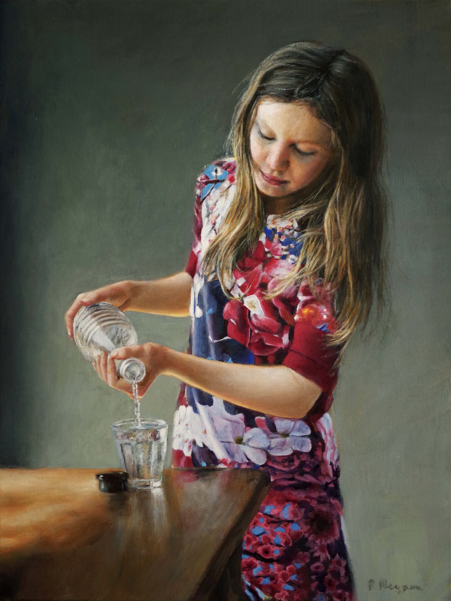 Meisje Water Realisme Tafel Huiskamer Karaf Fotorealisme Phiotorealism Floraldress